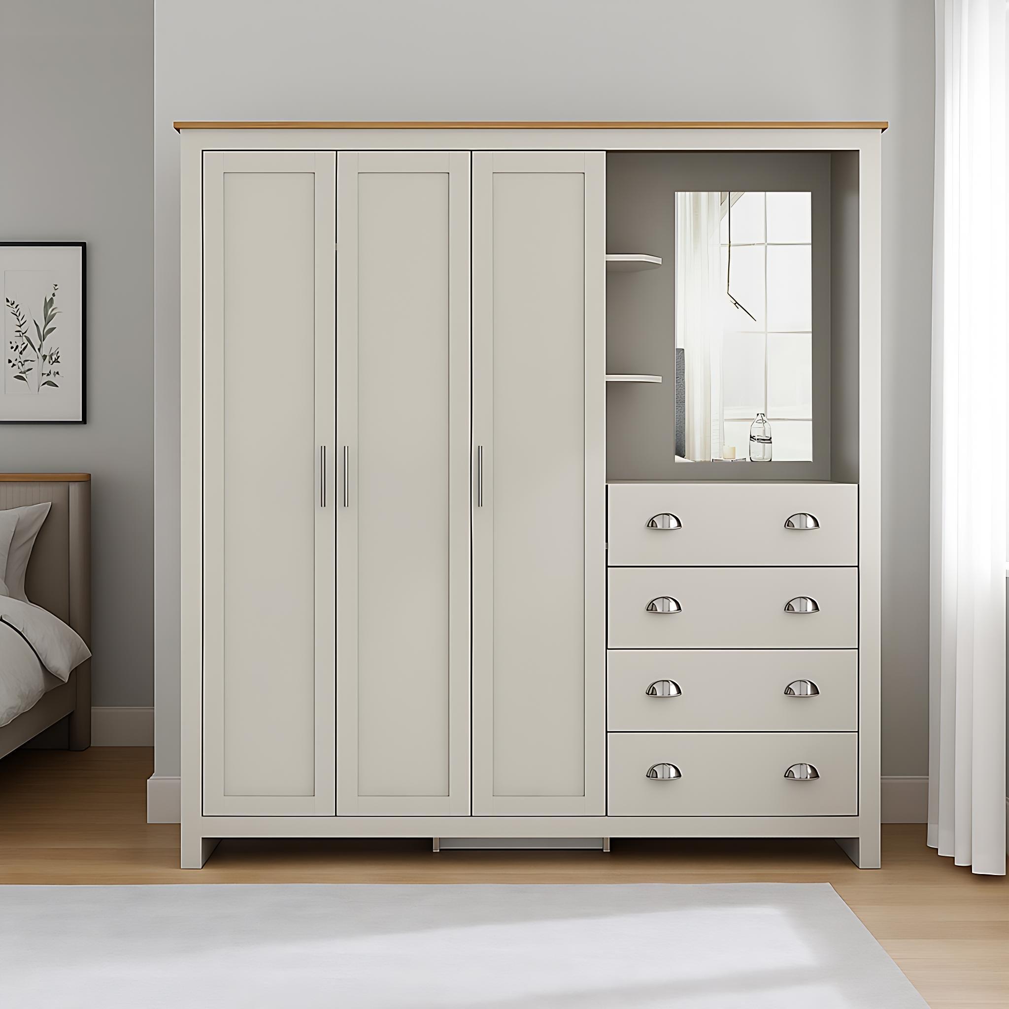 Introducing our Classic Combi Wardrobe—an elegant and versatile storage solution designed to enhance any bedroom. This beautifully crafted wardrobe seamlessly blends traditional style with modern functionality, offering an expansive and organized space to store and arrange all your clothing and accessories.