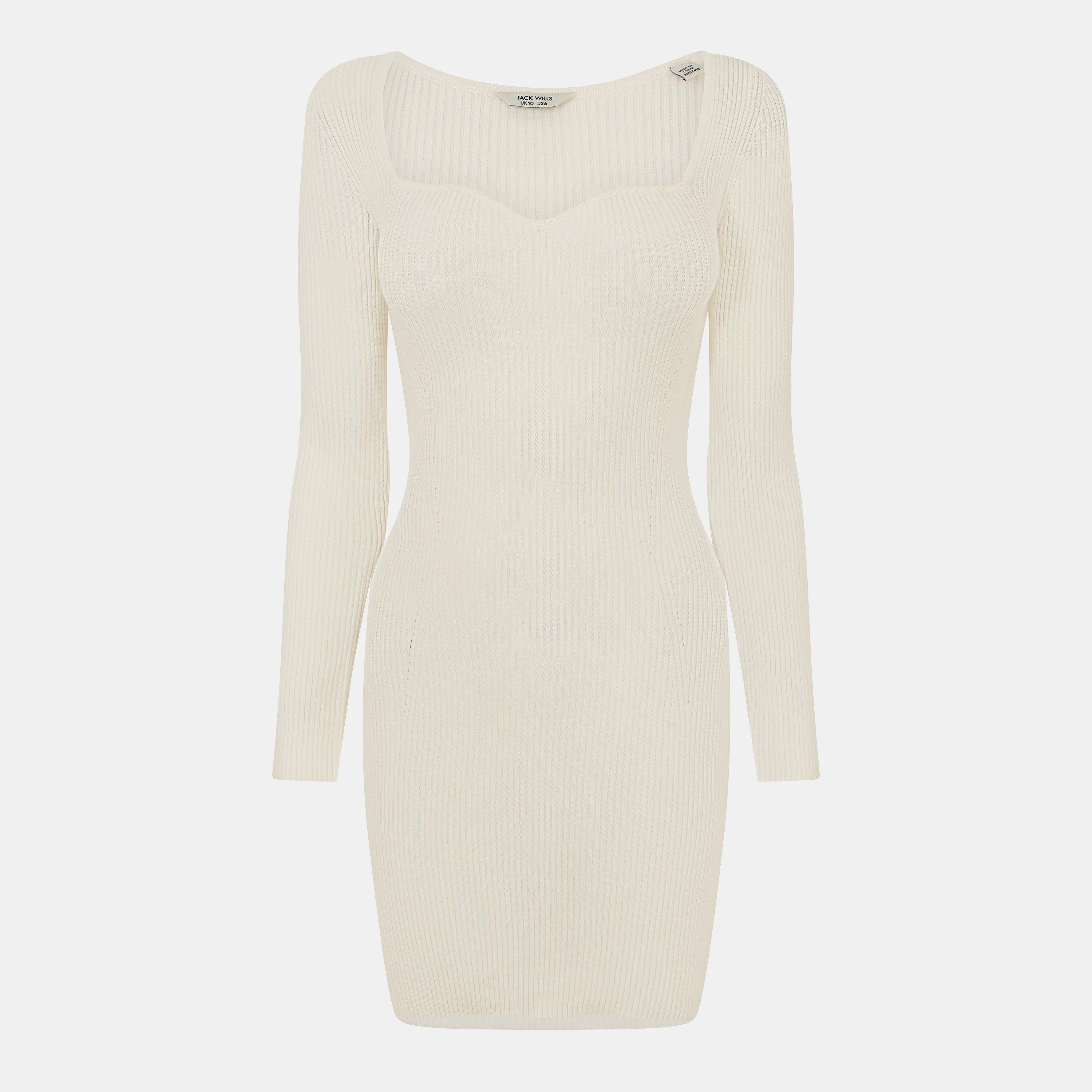 A repeat of our Sweetheart Mini Dress, this classic silhouette returns for Autumn/Winter 2023! Beautifully crafted in a super soft viscose blend knit, this striking piece features a traditional sweetheart neckline, long sleeves, a straight hem, an all-over rib design, and tone-on-tone stitching. Solid block colouring provides an excellent foundation to style this piece with any accessories, and the Jack Wills branding ensures instant designer appreciation. Fabric: 72% viscose, 28% polyester. For care instructions, please refer to garment labelling.