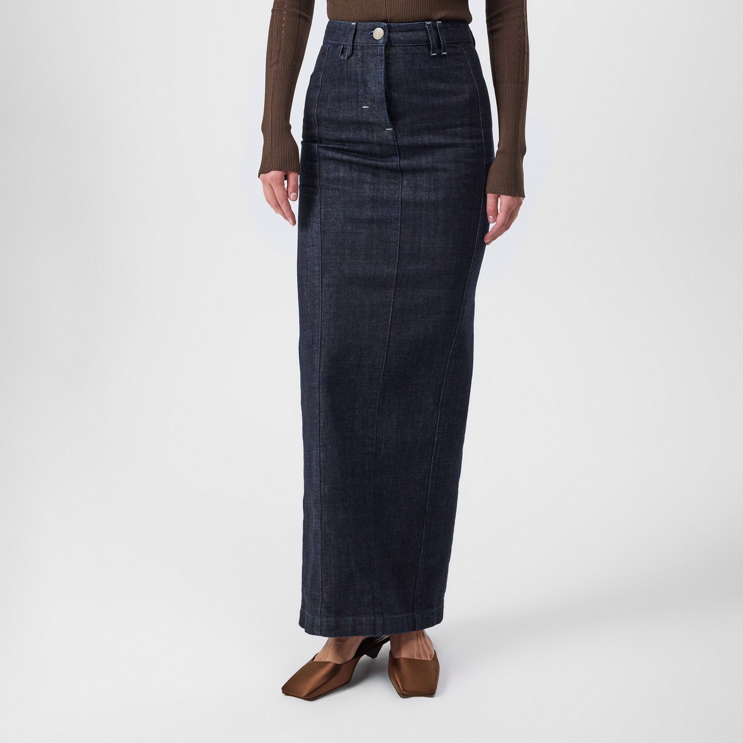 Jacquemus’ Denim Crayon Maxi Skirt blends effortless style with modern sophistication, featuring a regular fit, waistband with belt loops, and a straight cut with a subtle back split. Founded in 2009 by Simon Porte Jacquemus, the brand is known for its minimalist, chic designs. This versatile piece is perfect for a casual lunch outing or a relaxed day at the beach.