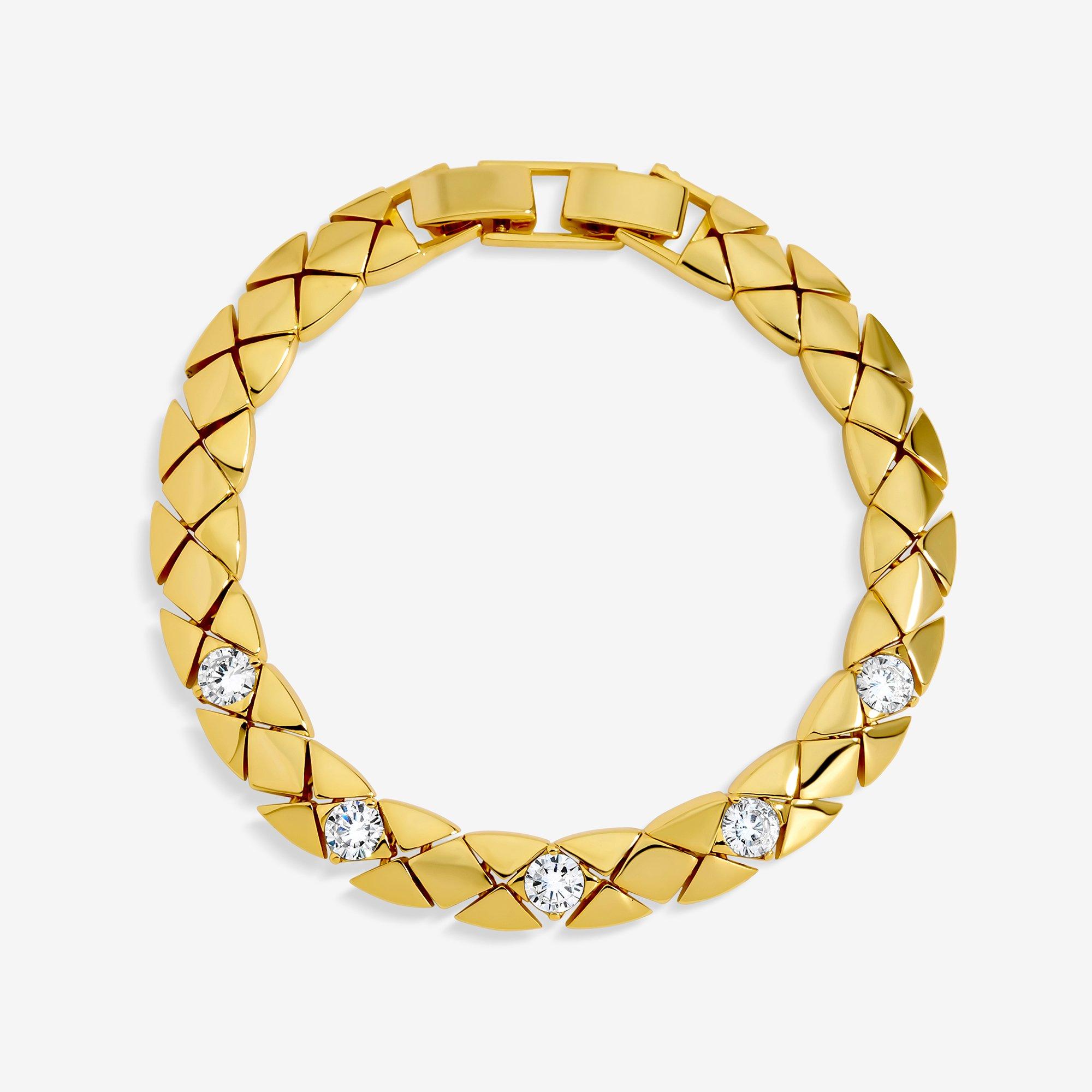 /Home/Accessories/Jewellery/Women's Jewellery/Bracelets & Bangles/18K Gold Plated Crystal Flat Chain Bracelet
