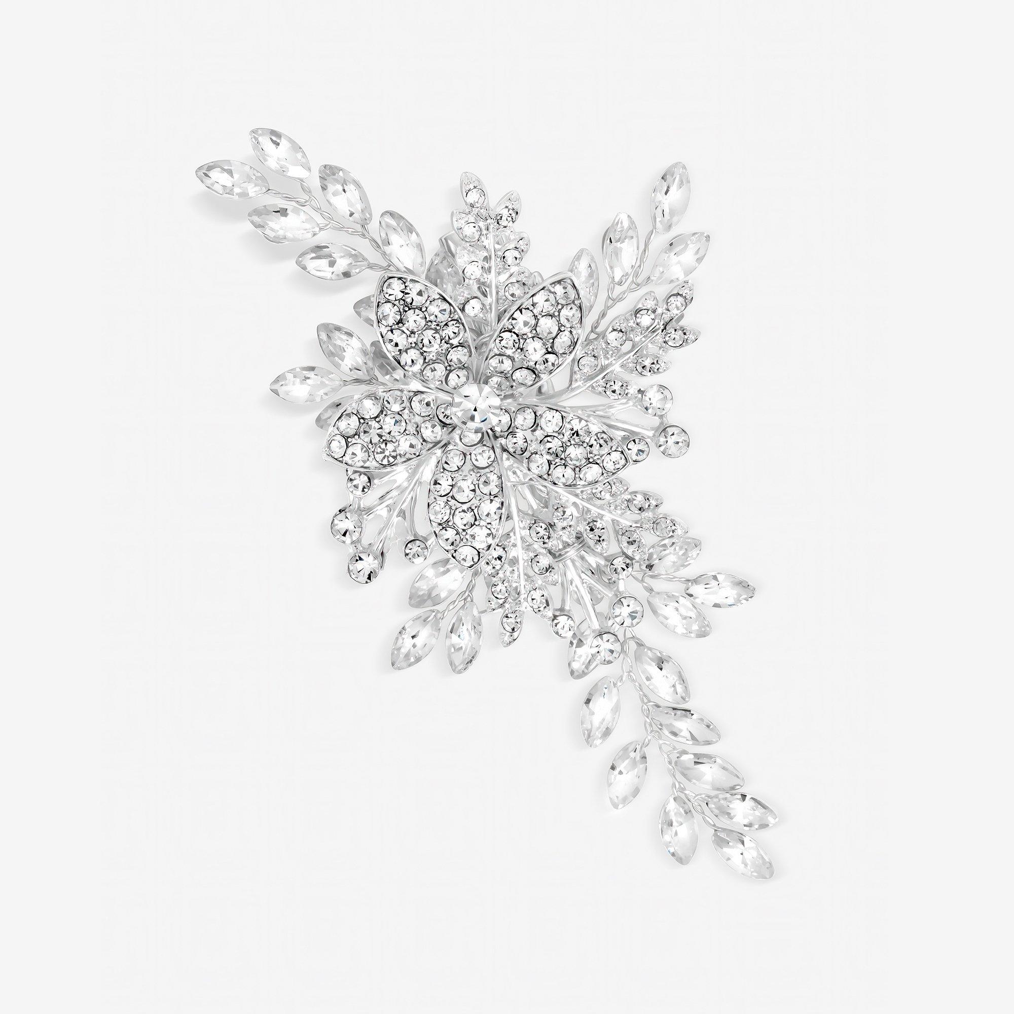 The Jon Richard silver plated leaf slide is an elegant bridal hair accessory and will complement both a modern and classic look. Material: Silver Plated Base Metal With Crystal, Fastening: Hair Slide, Width Dimension: 110mm, Drop Dimension: 60mm.