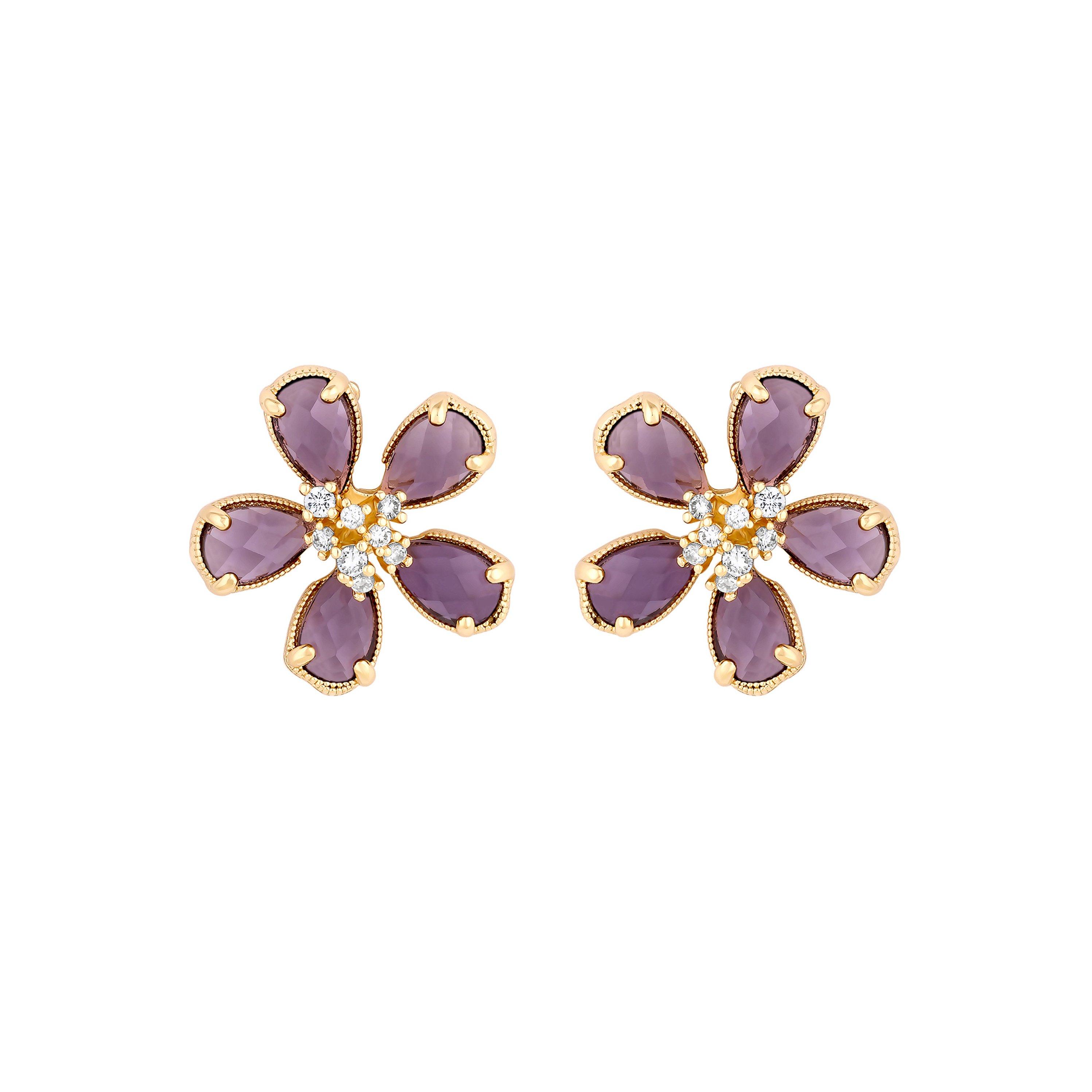 Jon RichardGold Plated Amethyst Floral Stud Earrings