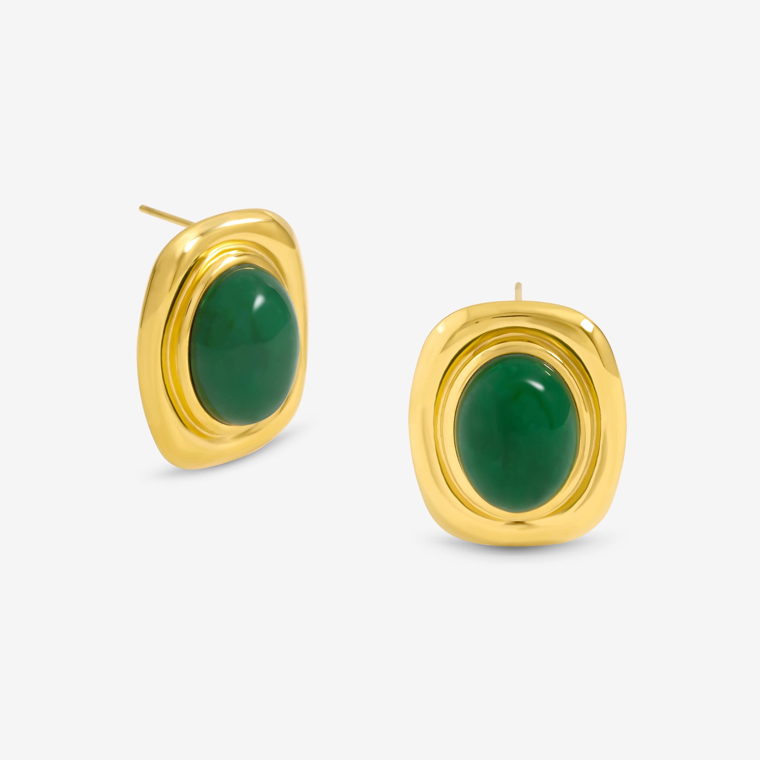 Our Gold Plated and Green Statement Earrings, feature a sleek gold tone base paired with a glossy green enamel finish, these earrings offer the perfect blend of classic shine and modern elegance. It,s the perfect addition to any Jewellery collection. Fastening: Post and Bullet Back. Width Dimension: 2mm. Length Dimension: 25.2mm. Material: Gold Plated Base Metal.