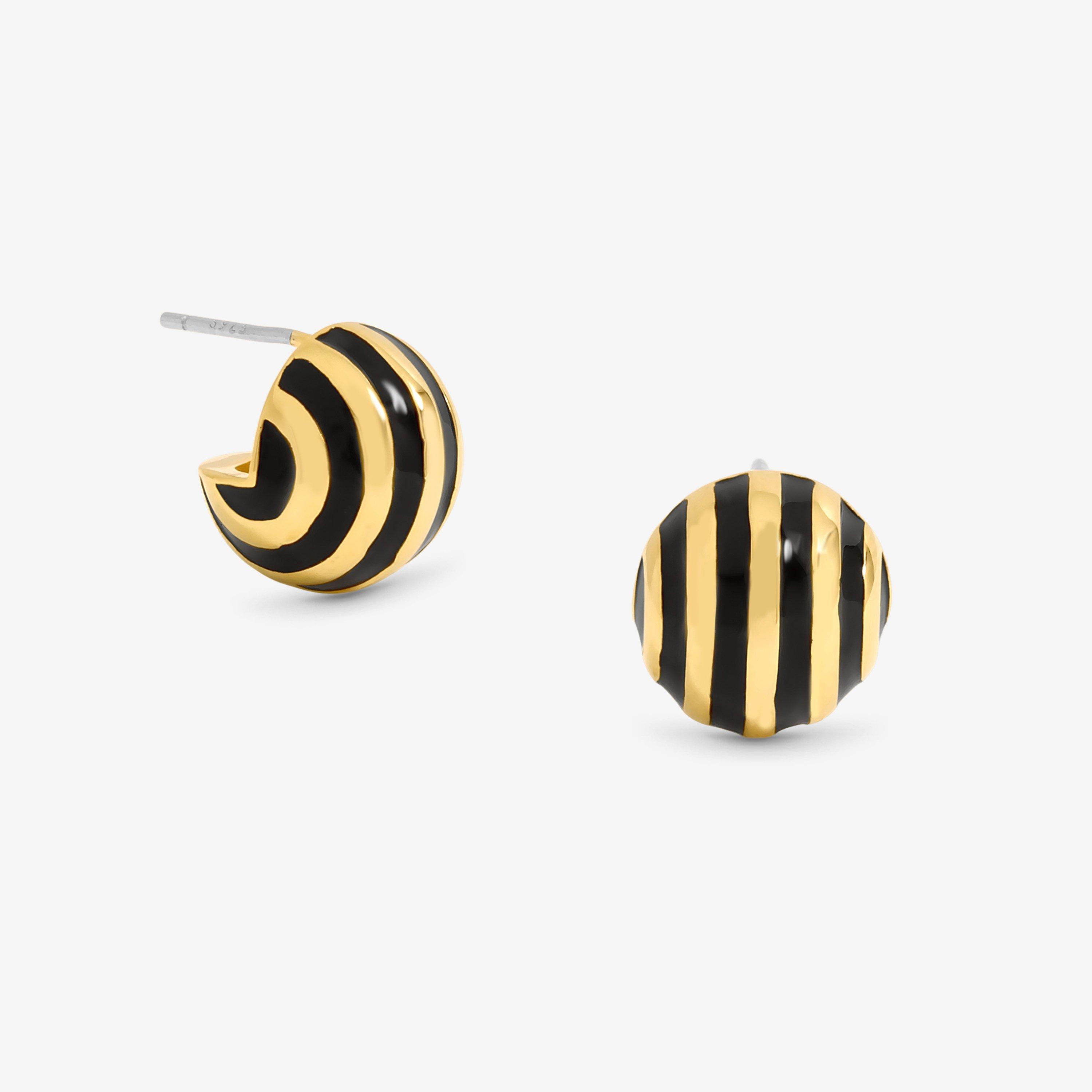 /Home/Accessories/Jewellery/Women's Jewellery/Earrings/Gold Plated And Jet Enamel Stripe Dome Earrings
