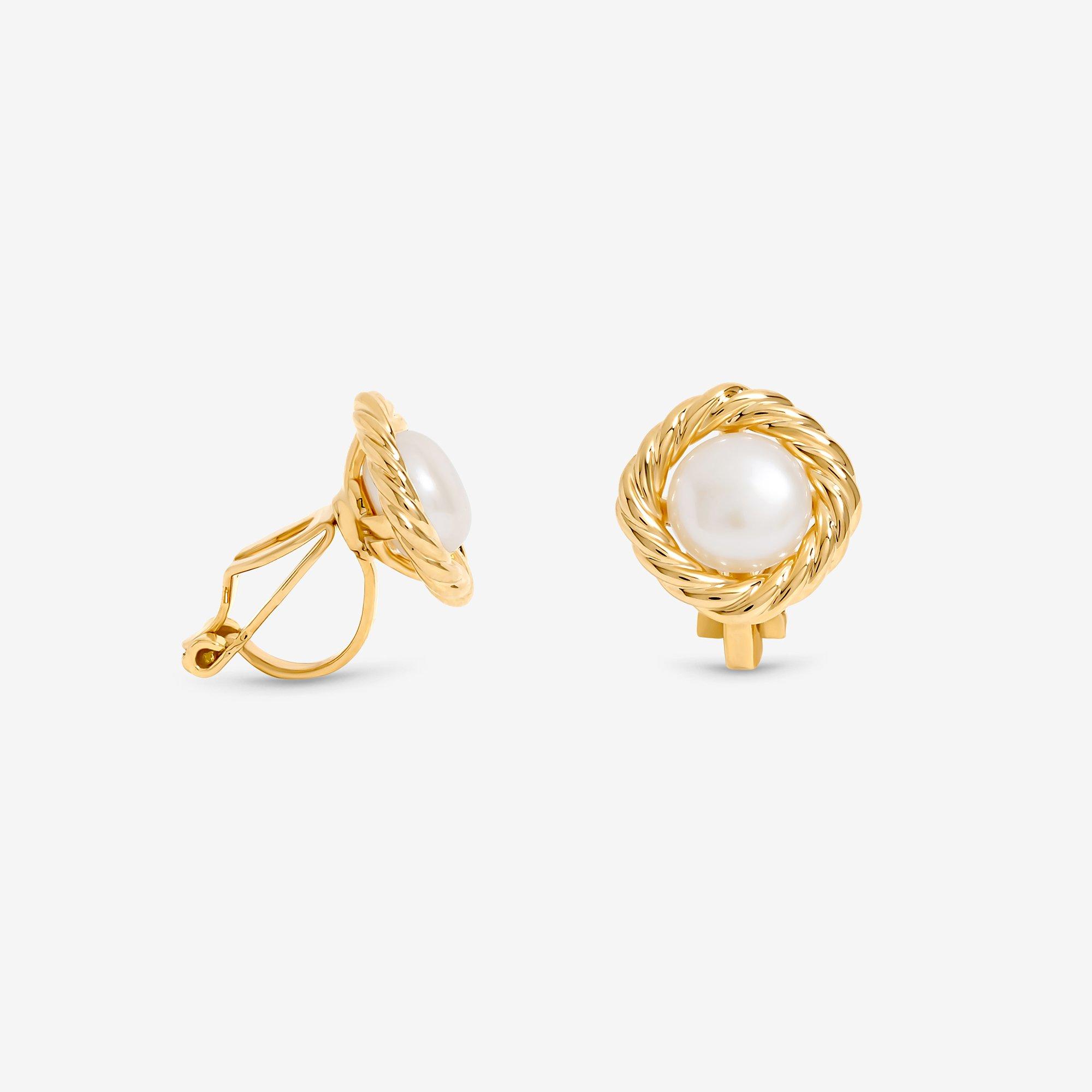 /Home/Accessories/Jewellery/Women's Jewellery/Earrings/Gold Plated & Pearl Twisted Edge Clip Earrings