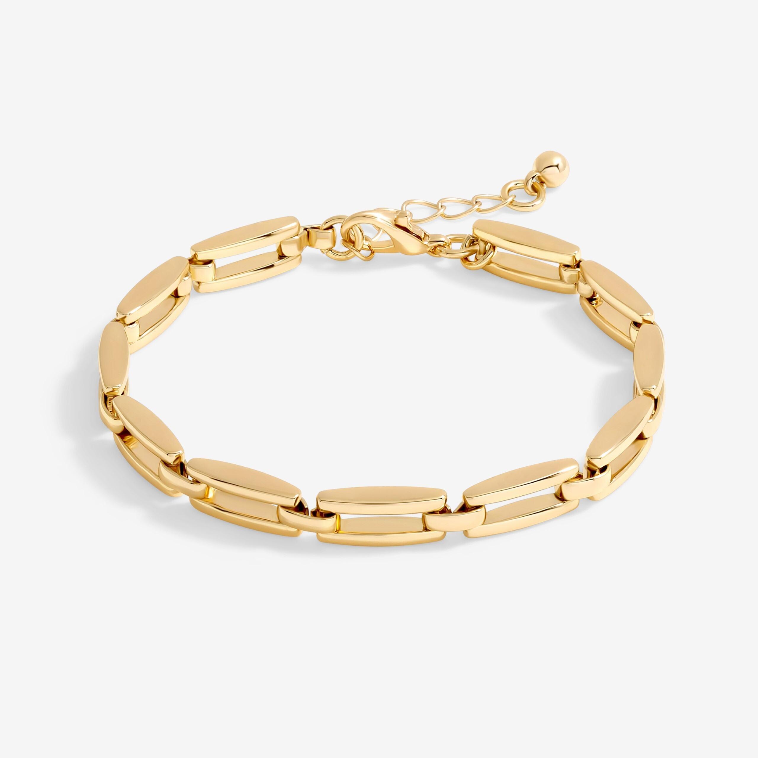 Our Jon Richard Gold Plated Chain Link Bracelet is a timeless and elegant piece that adds sophistication to any outfit. Featuring classic, interlocking chain links with a polished gold-Plated finish, this bracelet offers a sleek and versatile design. Perfect for both everyday wear and special occasions, it can be worn alone for a refined look or paired with other pieces for a layered effect. A must-have addition to any jewellery collection, this bracelet combines style andurability in a chic, modern design. Fastening: 5.8mm. Width Dimension: 5.8mm. Length Dimension: 190.5mm. Chain Length: 7.5. Material: Gold Plated Base Metal.