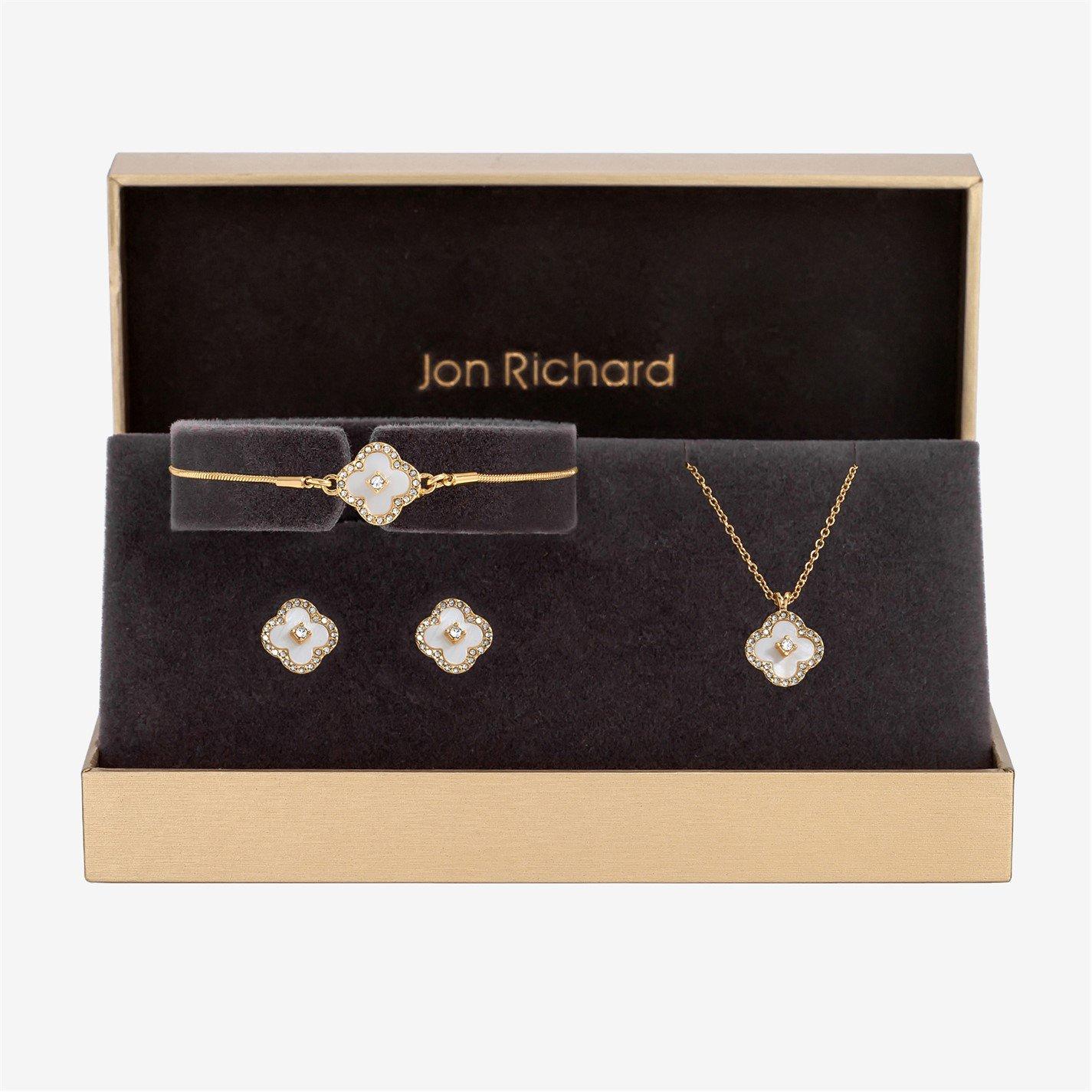 /Home/Accessories/Jewellery/Women's Jewellery/Jewellery Sets/Gold Plated Crystal Clover Trio Set - Gift Boxed