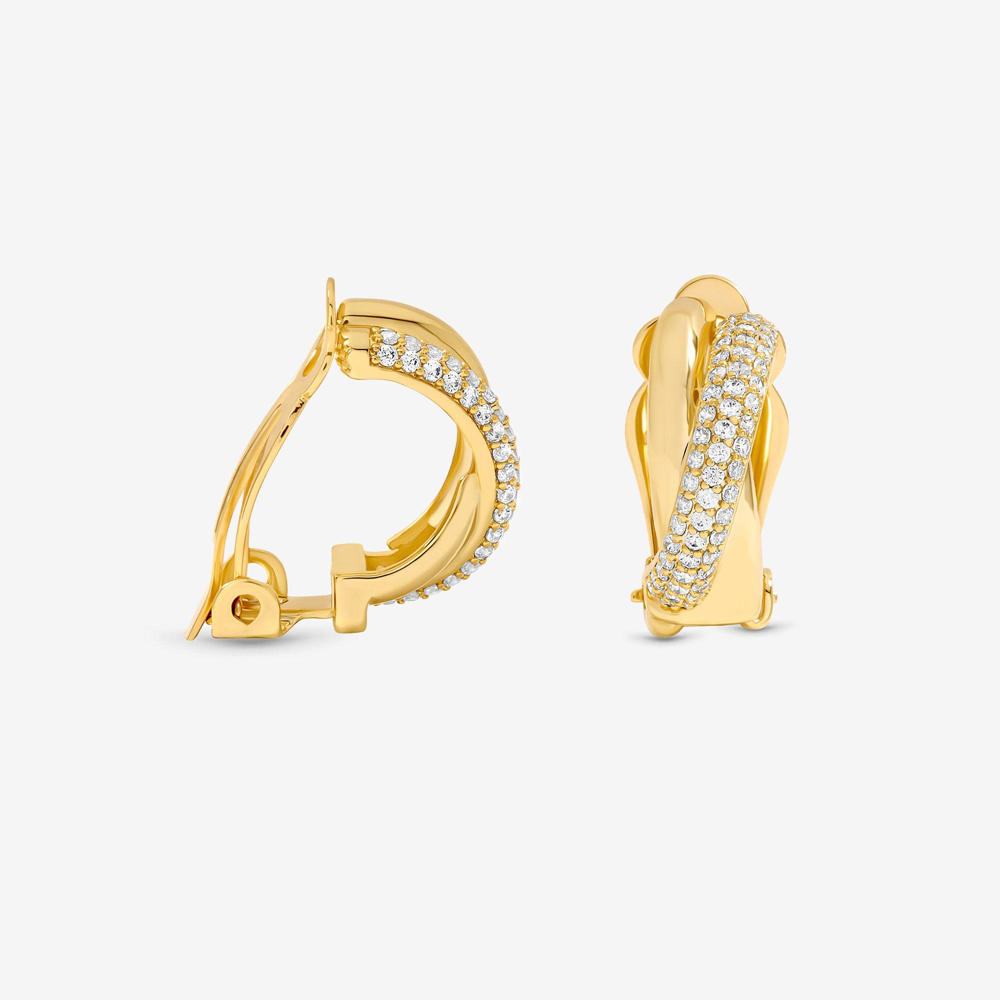 /Home/Accessories/Jewellery/Women's Jewellery/Earrings/Gold Plated Pave & Polished Hoop Clip Earrings