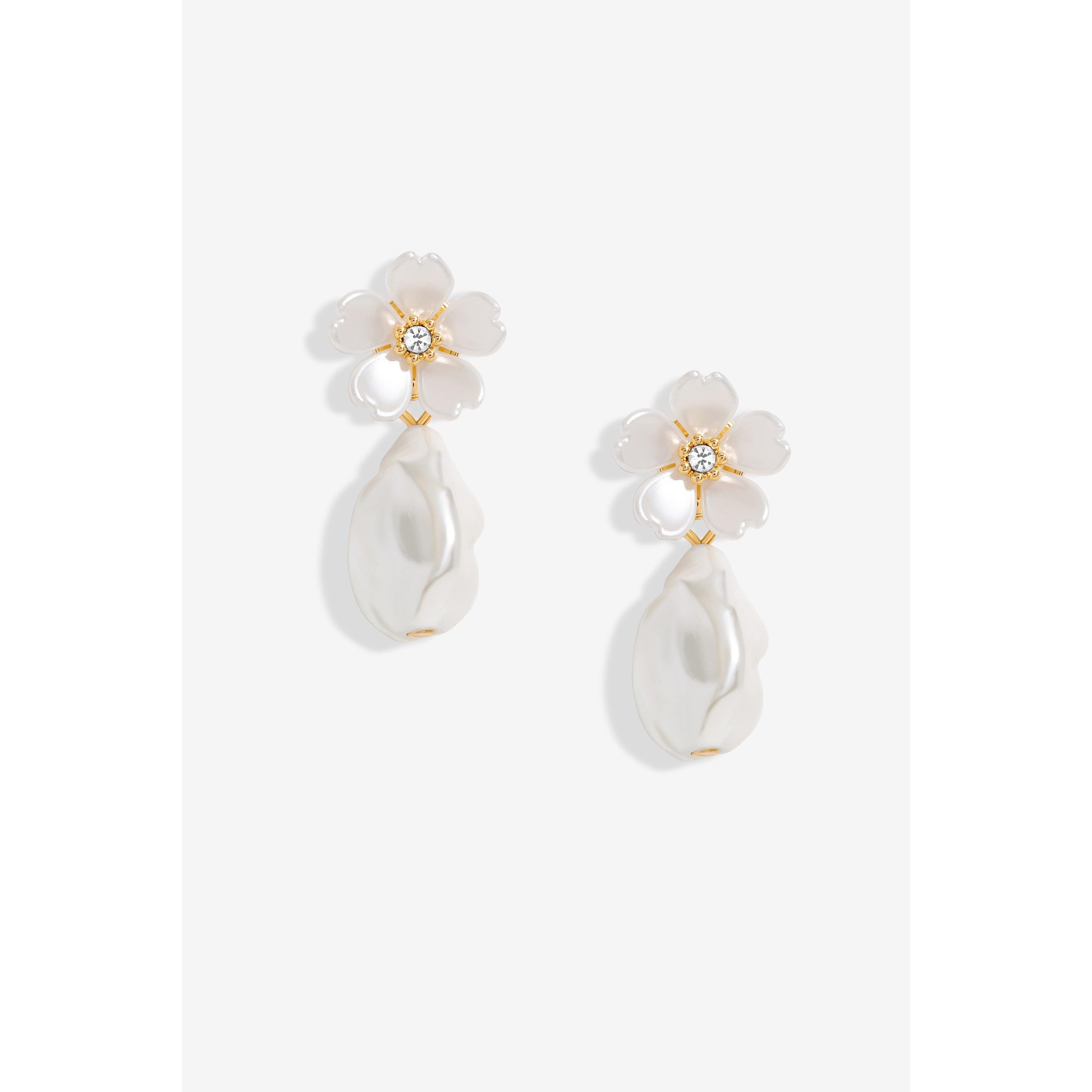 Our Jon Richard Gold Plated White Floral And Pearl Earrings features a delicate white floral design complemented by a lustrous pearl, set in warm gold plating. The soft floral accent and elegant pearl create a sophisticated and feminine look, perfect for adding a touch of timeless beauty to any outfit. Ideal for both special occasions and everyday wear, these earrings exude refined elegance. Fastening: 14mm. Width Dimension: 14mm. Length Dimension: 33mm.