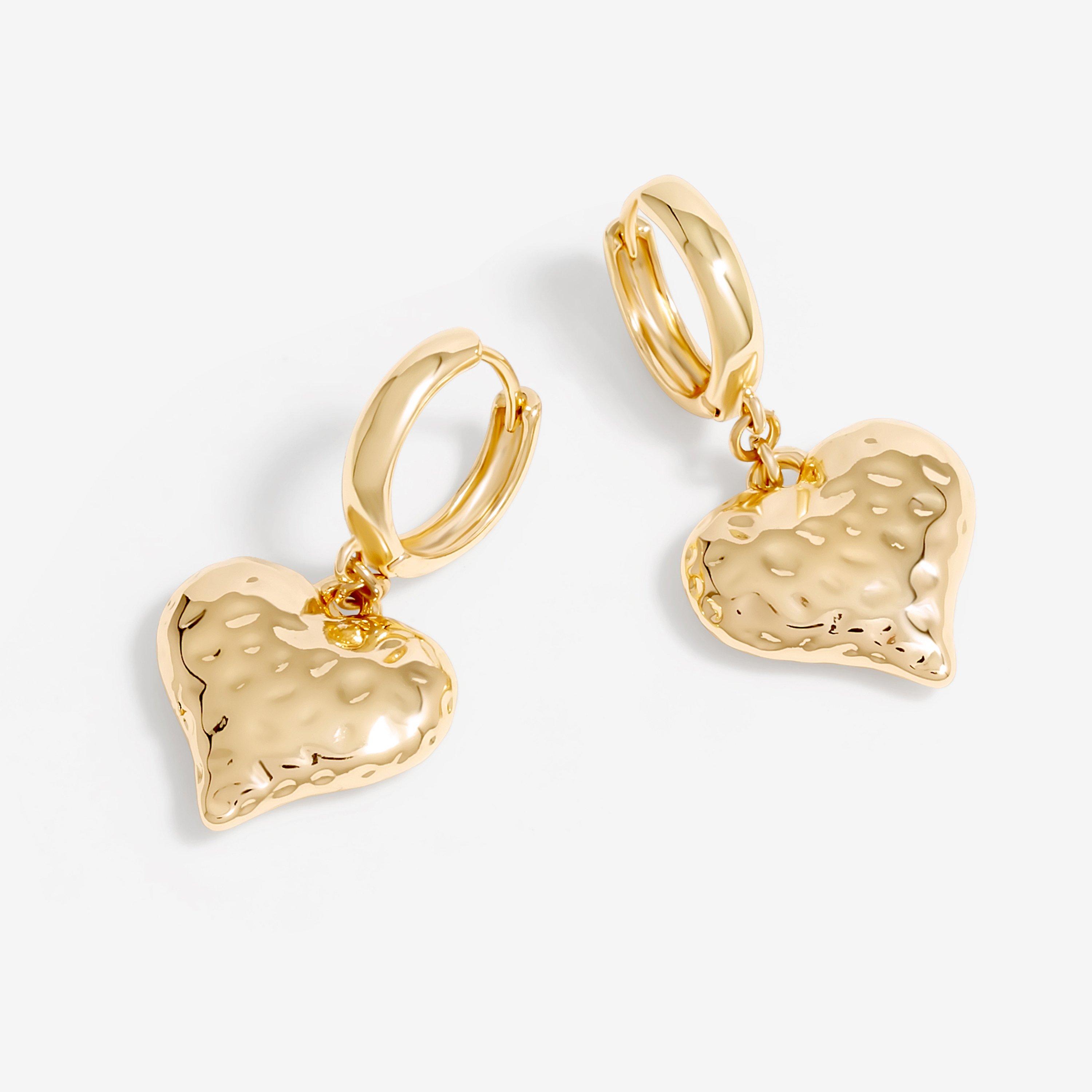 /Home/Accessories/Jewellery/Women's Jewellery/Earrings/Gold Polished Textured Heart Huggie Hoop Earrings
