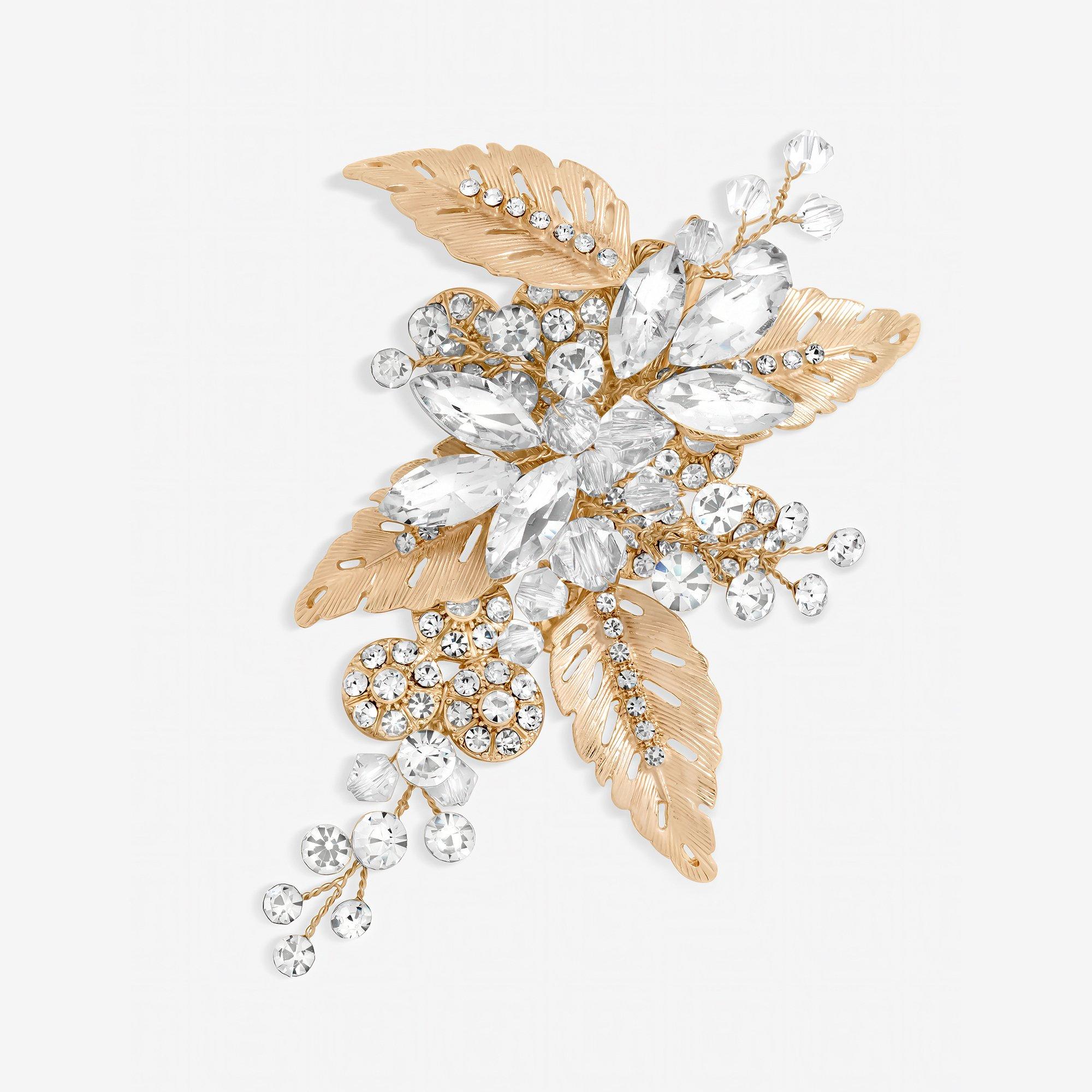 Rose gold plated pink floral hair clip from the the Jon Richard bridal range. Perfect for achieving the Boho look. Material: Rose Gold Plated Base Metal, Fastening: Hair Clip, Width Dimension: 100mm, Drop Dimension: 60mm.
