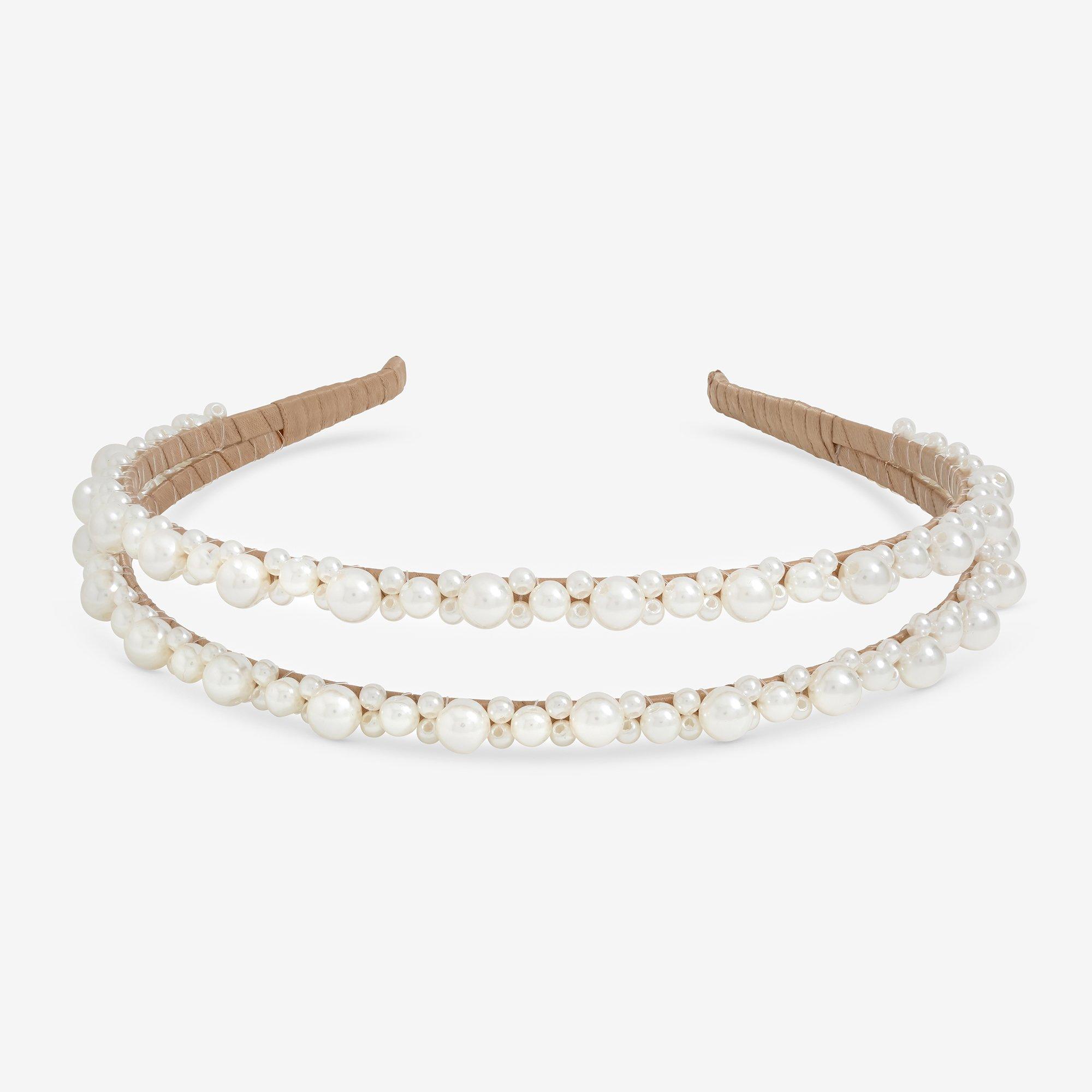 Our Jon Richard Pearl Double Row Headband features two graceful rows of lustrous pearls, creating a sophisticated and feminine silhouette. This elegant accessory adds instant polish to any hairstyle. Fastening: Headband. Width: 24mm, length: 130mm. Material: Imitation pearl.