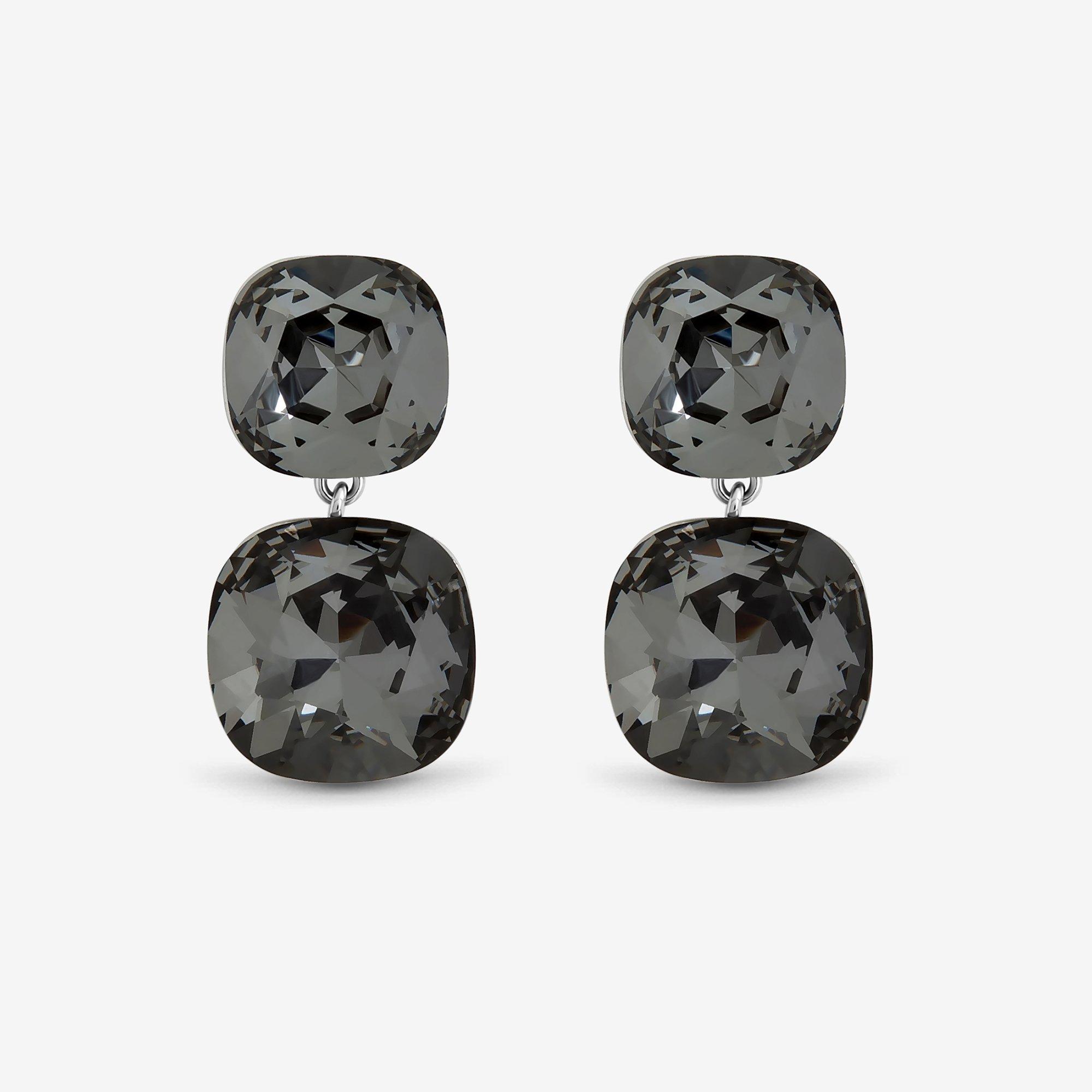 Add a touch of glamour with our Rhodium Plated and Black Diamond Drop Earrings, designed to shine effortlessly. Featuring a bold black diamond crystal design and finished in rich rhodium plating, this elegant drop style offers timeless sophistication. The perfect piece to elevate any jewellery collection. Fastening: Post and Bullet Back. Width dimension: 13.9mm. Length dimension: 28.6mm. Material: Rhodium Plated Base Metal.