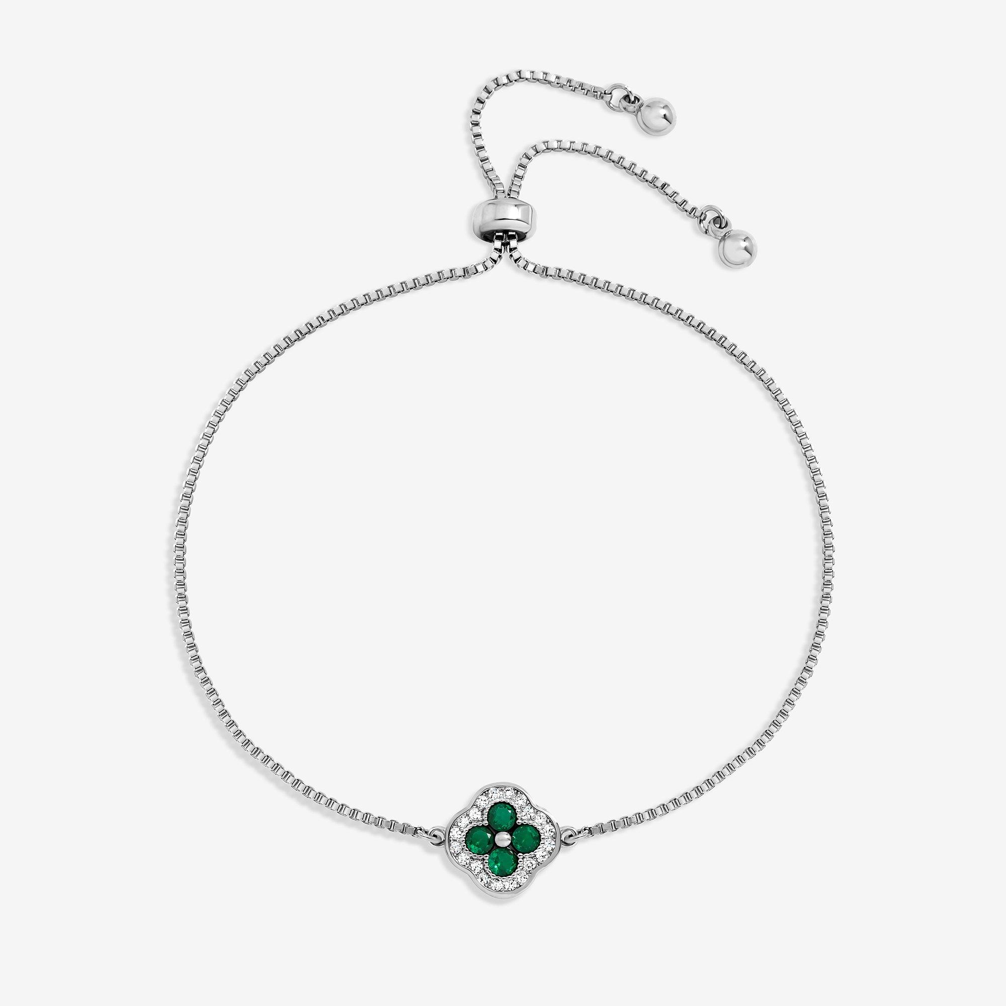 /Home/Accessories/Jewellery/Women's Jewellery/Bracelets & Bangles/Rhodium Plated and Emerald Clover Toggle Bracelet