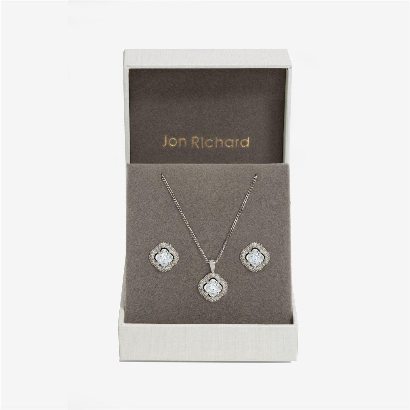 /Home/Accessories/Jewellery/Women's Jewellery/Jewellery Sets/Rhodium Plated CZ Clover Set - Gift Boxed