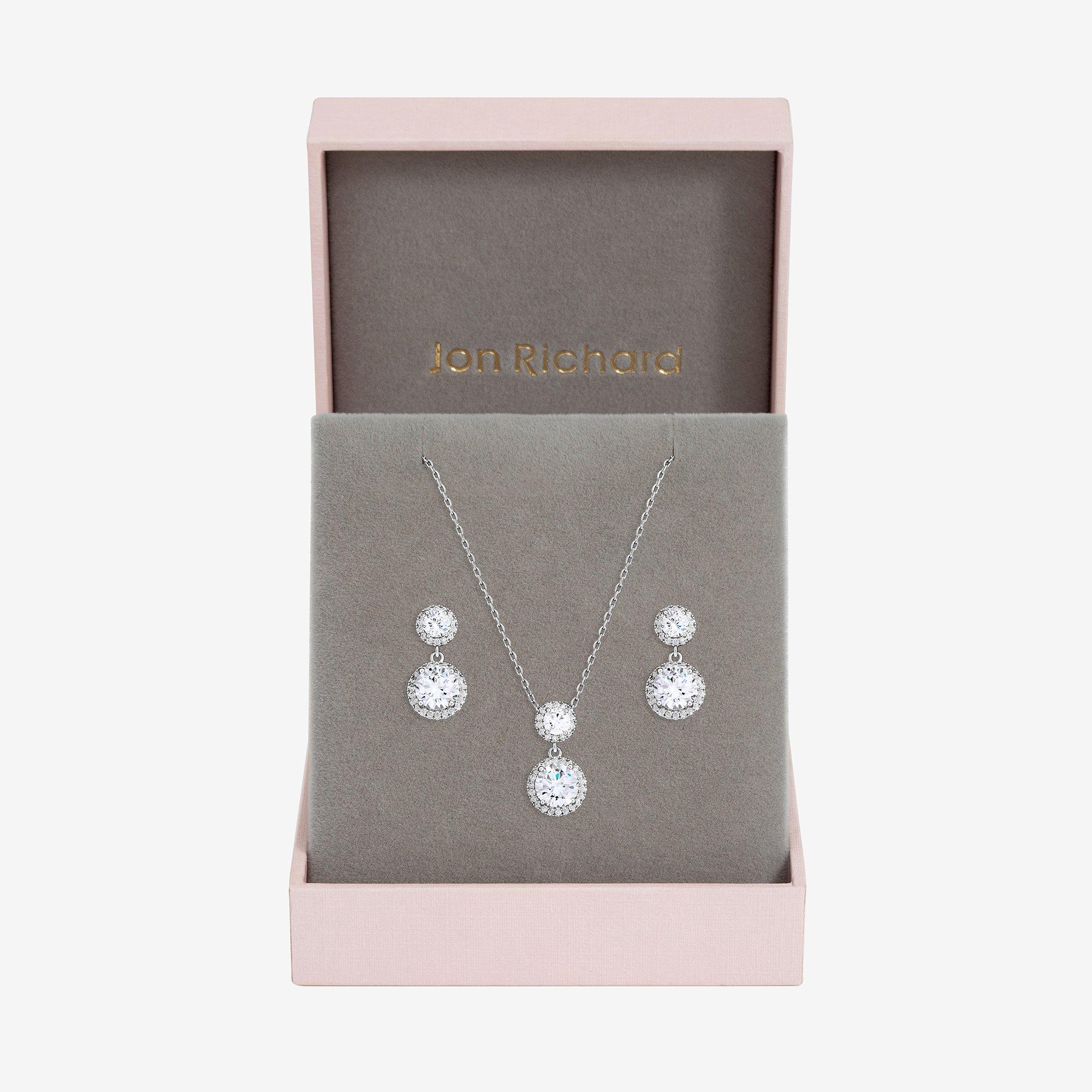 /Home/Accessories/Jewellery/Women's Jewellery/Jewellery Sets/Rhodium Plated CZ Double Halo Drop Set - Gift Box