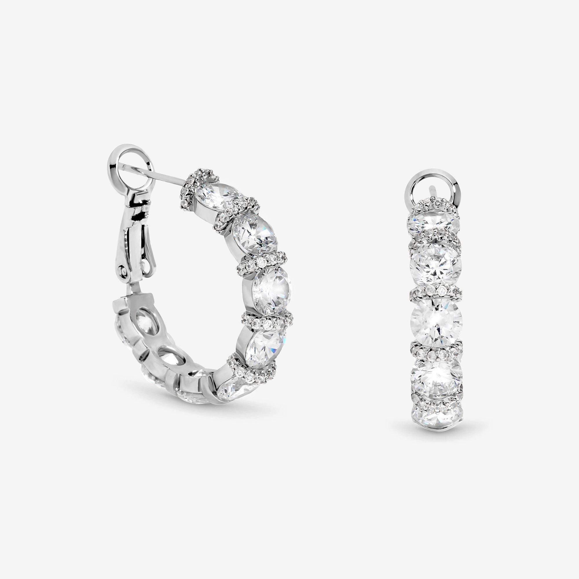 Rhodium Plated CZ Round Stone Hoop Earrings