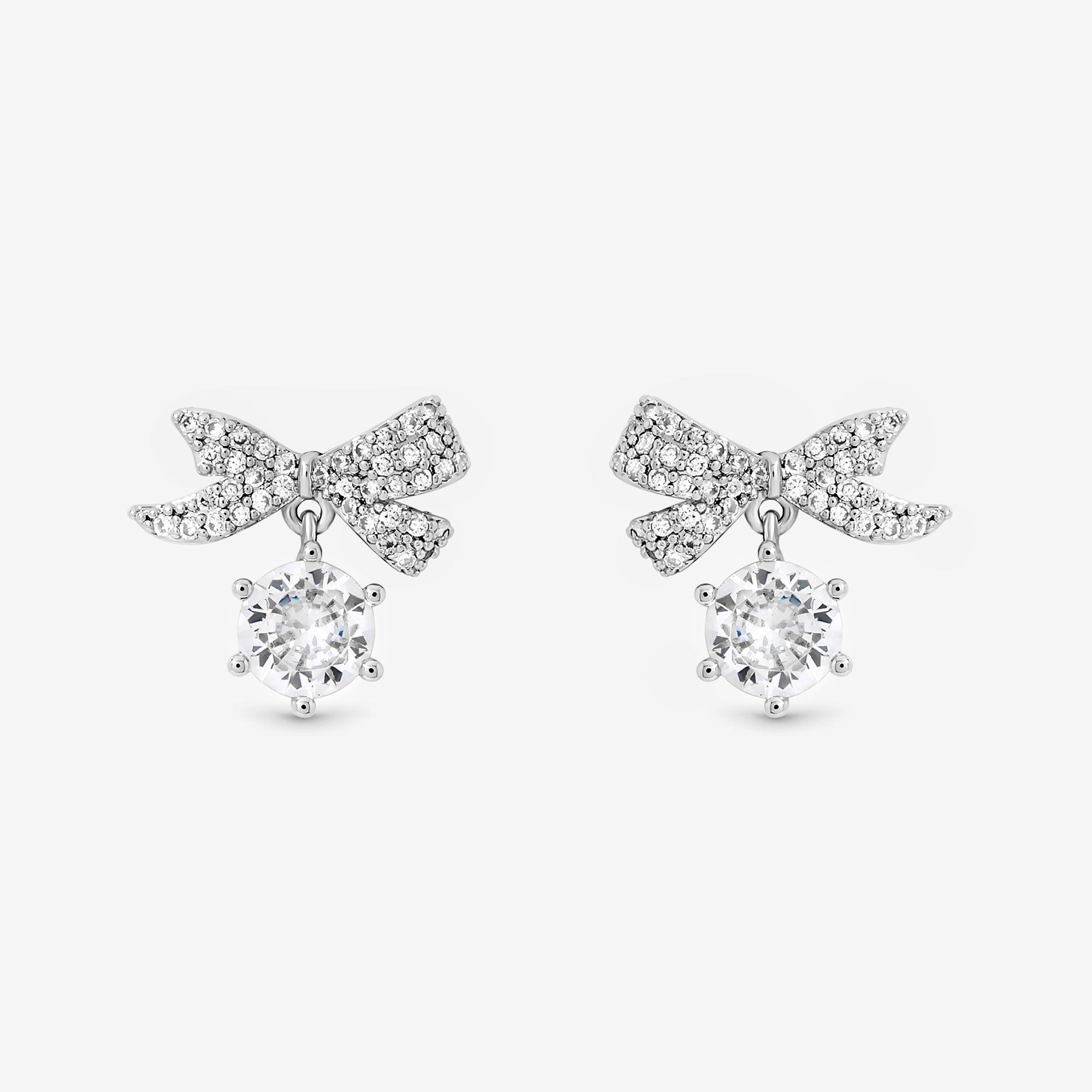 Jon RichardRhodium Plated Pave Mini Bow Earrings
