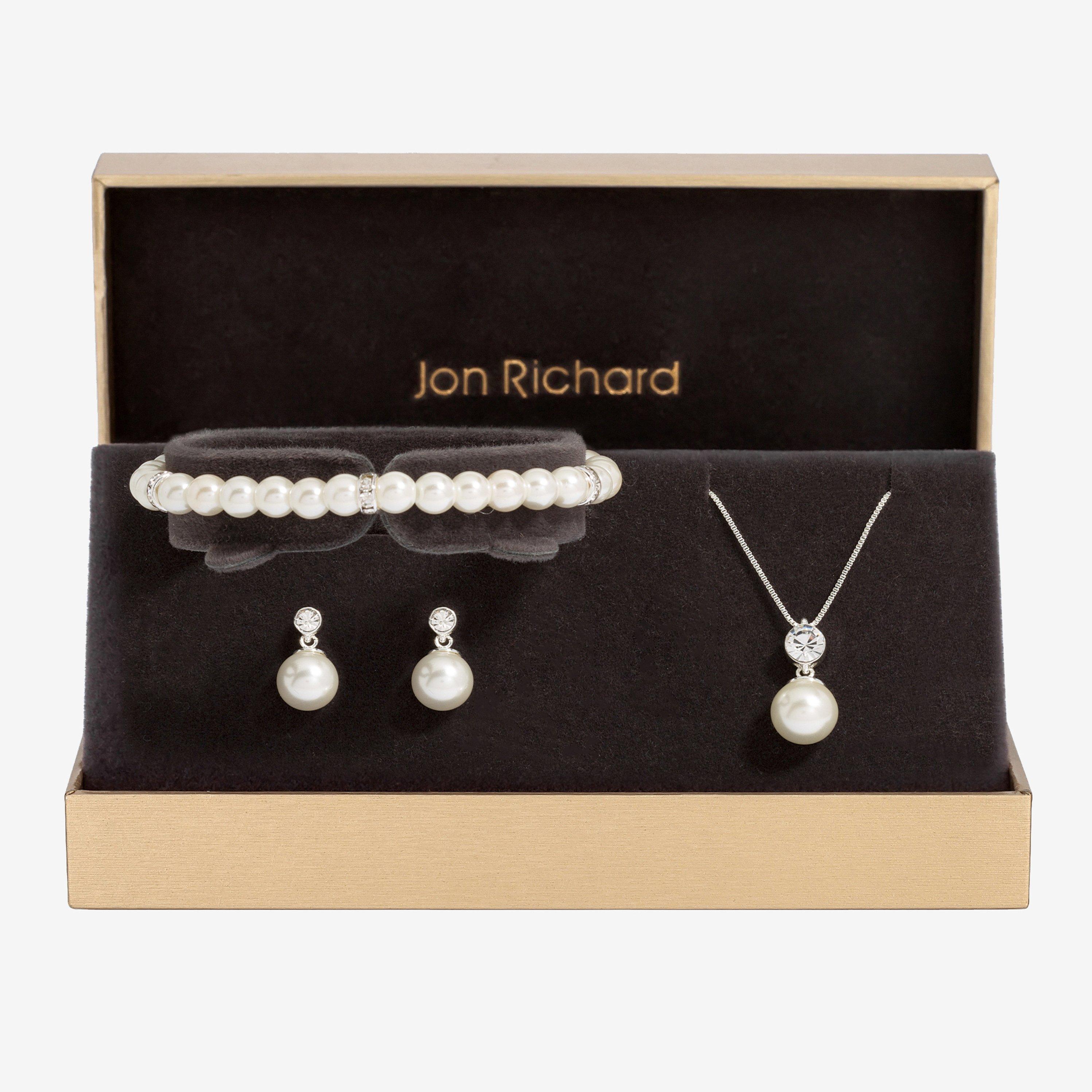 /Home/Accessories/Jewellery/Women's Jewellery/Jewellery Sets/Silver Plated And Crystal Pearl Trio Set