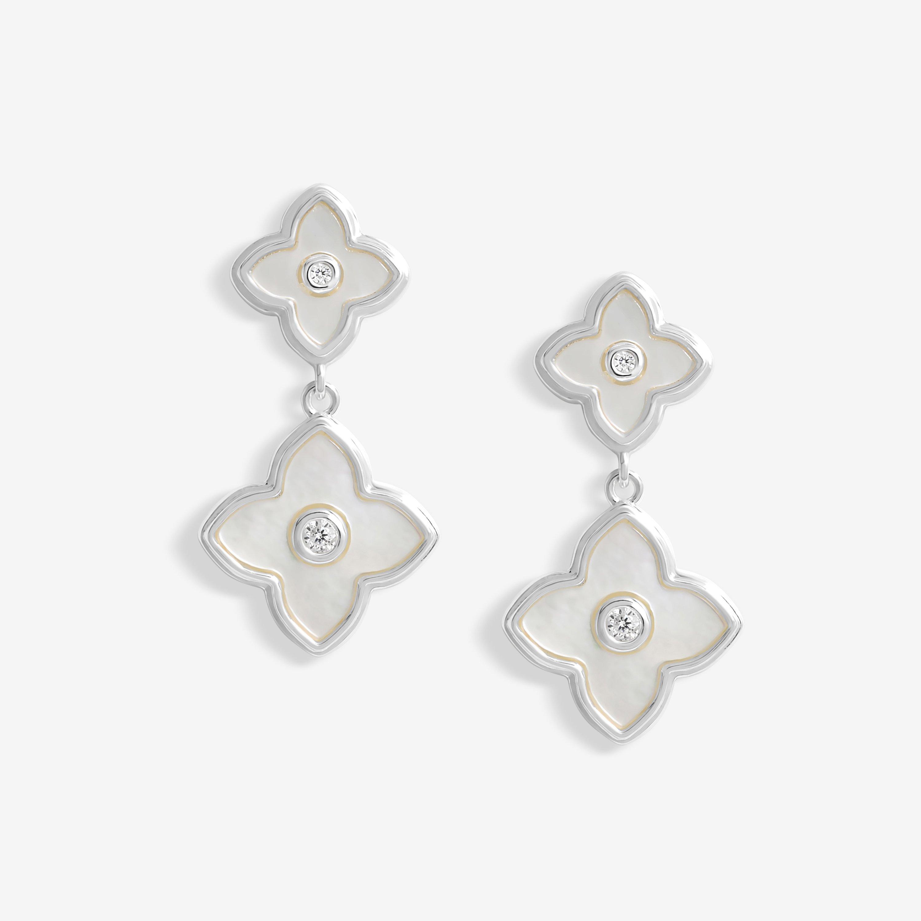 /Home/Accessories/Jewellery/Women's Jewellery/Earrings/Silver Plated And MOP Clover Double Drop Earrings