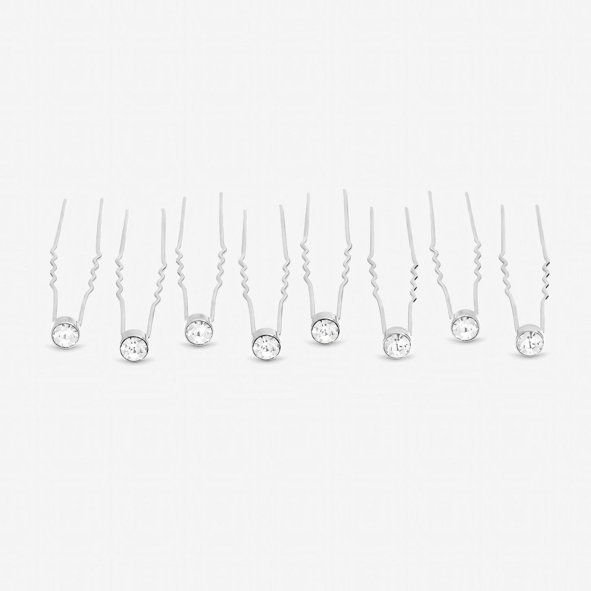 Our Jon Richard Silver Plated Crystal Pins feature shimmering crystal accents set on polished silver-plated pins. Designed to add a subtle touch of glamour to any hairstyle. Fastening: Hair pins. Width: 6mm, length: 70mm. Material: Silver plated base metal.
