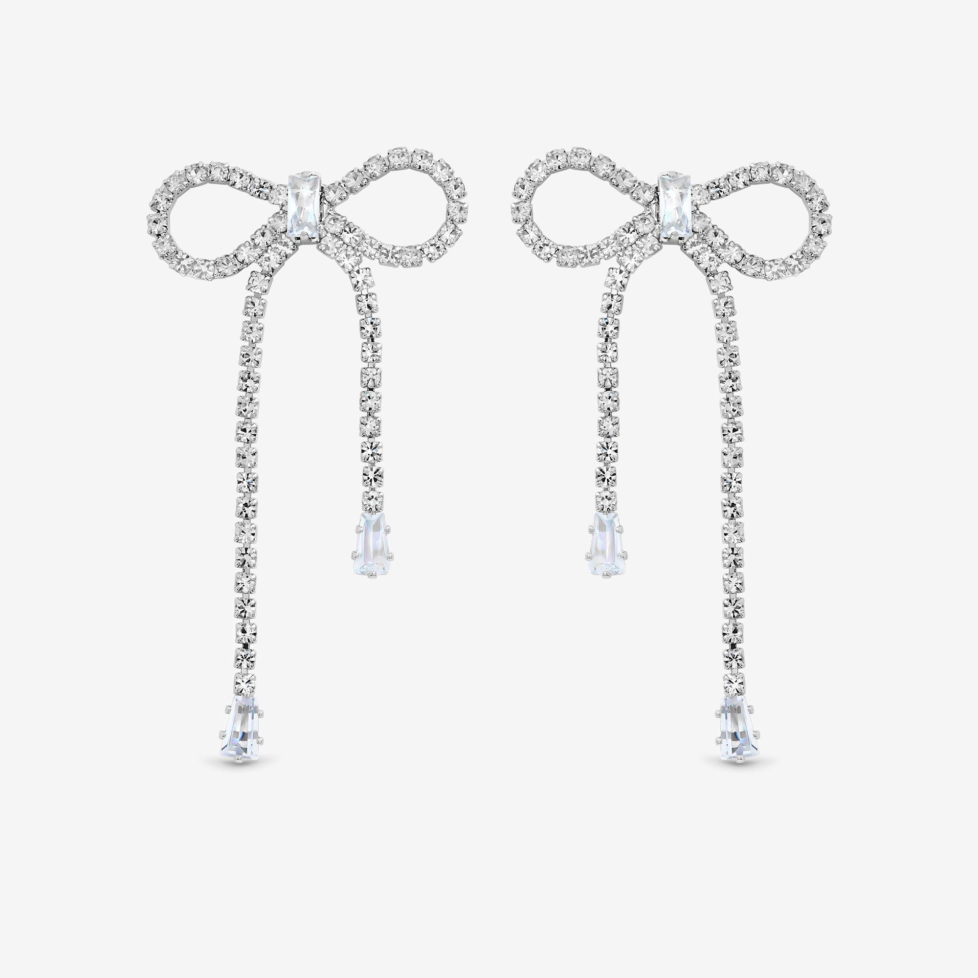 /Home/Accessories/Jewellery/Women's Jewellery/Earrings/Silver Plated Crystal Statement Bow Drop Earrings
