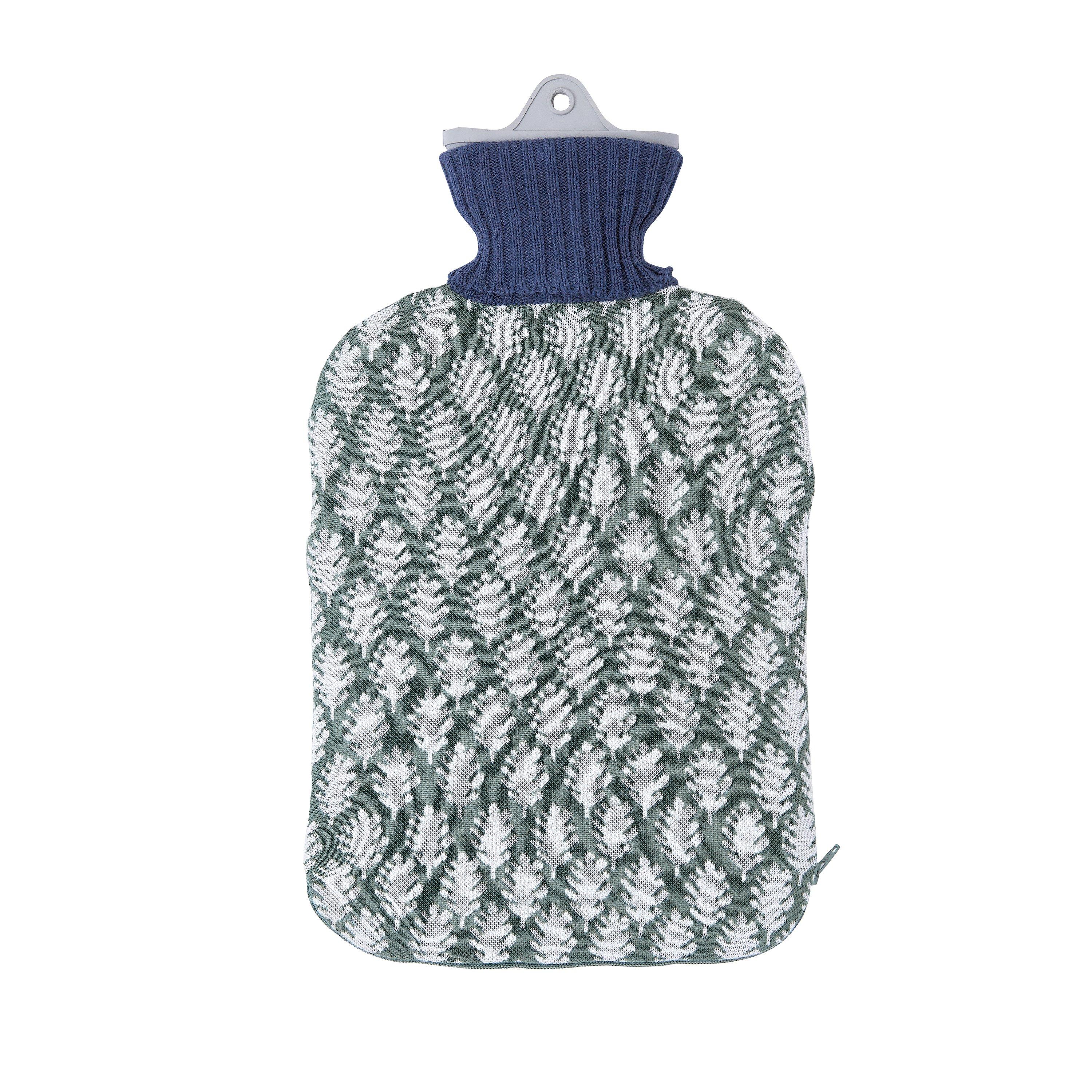 Warm hugs on demand? Yes please! Whether you're feeling a little under the weather, or simply seek comfort in warm things, a hot water bottle is an essential for every home. And this one will not only feel great, but look good too. The cover is knitted so every cuddle will be a soft one, it has a intricate jacquard oak leaf design to the front, a navy bottle neck and a zip bottom for easy access to the bottle inside. The bottle itself is made from 100% rubber, has a secure fastening to avoid any spillages, fits up to two litres of water and complies to hot water bottle safety standards. Ultimate cosiness awaits...