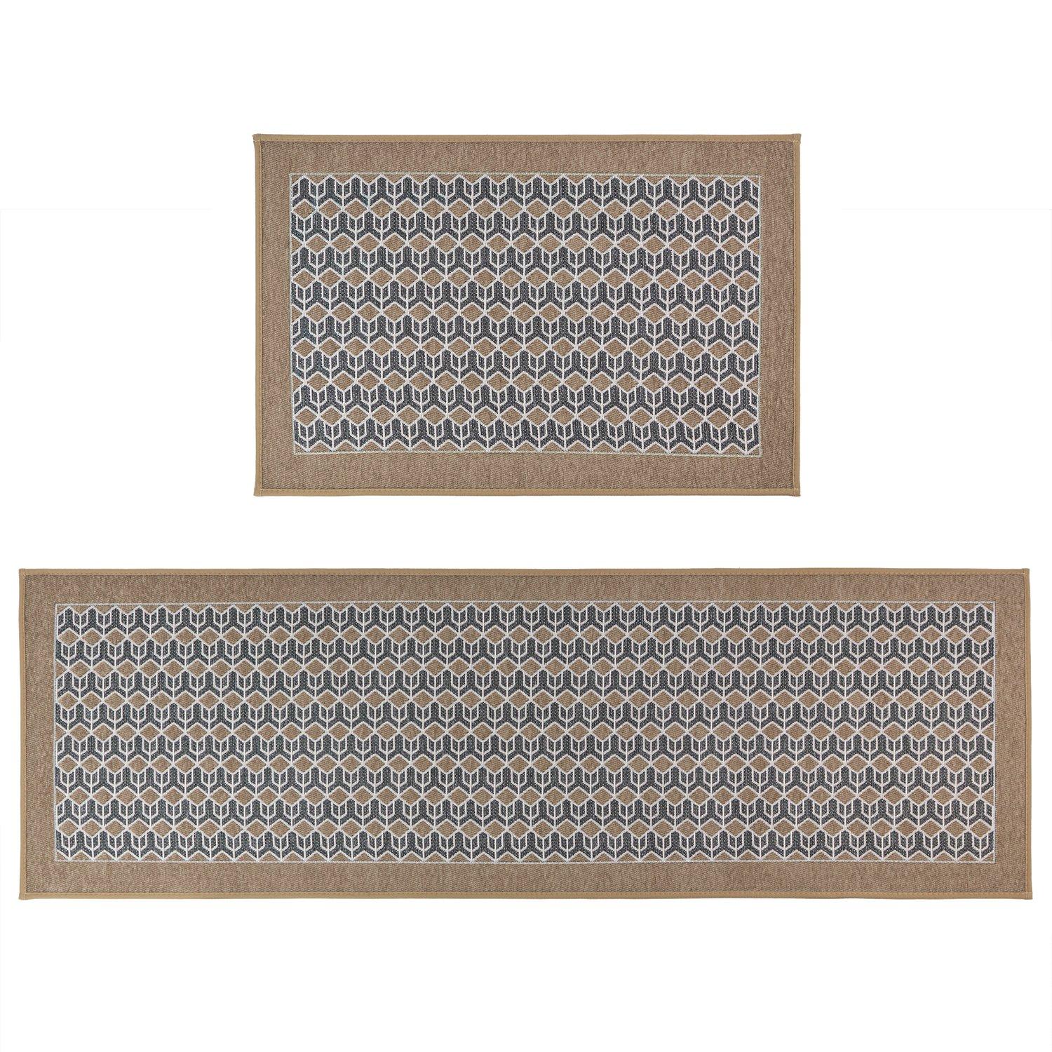 Set includes matching mat and runner creating a cohesive style throughout your home This stylish set features a woven linen look and striking patterns, designed to suit any setting in and around your home, its elegant design combined with its durability is a great addition to your interior Perfect for entrances, kitchens, laundry rooms, offices, and more, it brings a touch of warmth and style to every setting Slim design ensures it easily fits underneath low-profile doors while the beige colours blend with most decor around the home The slip-resistant rubber backing helps prevent movement on most floor types when wiping your feet Another great feature is the flexibility; its wrinkle resistant, when youve washed the mat, it will lay flat with no creases When your mat and runner get dirty, its no problem, simply pop it in the wash at 30C 100% Polyester with a rubber backing Suitable for indoor use Mat: 50x75cm approx. Runner: 50x150cm approx.