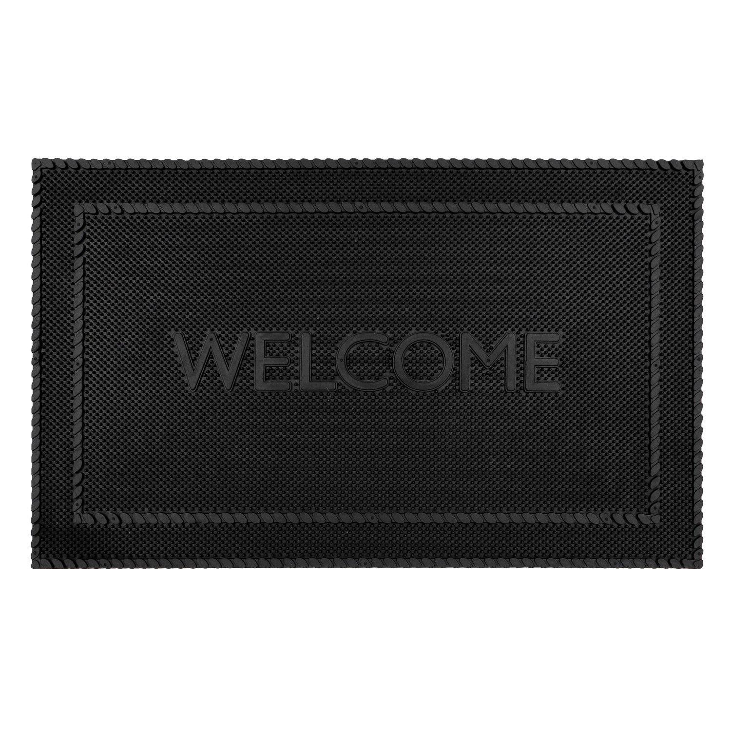 Flexible rubber studs that trap dirt and grit from shoes, while the raised surface gets into the soles grooves removing excess mud and dirt, leaving your home clean and tidy Rope edged detail design and welcome message provide a pleasant greeting for your visitors and designed to complement any entrance Made from rubber, meaning the mat is long lasting and durable making it ideal for a busy home or office Practically maintenance free, simply shake and hose to easily clean Great quality and suitable for all weathers, all year round Suitable for outdoor use Size: 45x75cm approx.