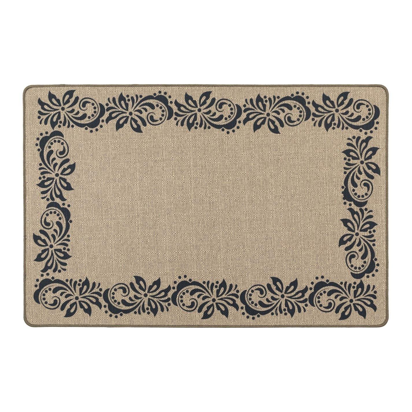 This stylish linen effect mat with a scroll border print, designed to suit any setting in and around your home, its elegant design combined with its durability is a great addition to your interior Perfect for entrances, kitchens, laundry rooms, offices, and more, it brings a touch of warmth and style to every setting Slim design ensures it easily fits underneath low-profile doors while the neutral/black blends with neutral tones around the home The slip-resistant rubber backing helps prevent movement on most floor types when wiping your feet Another great feature is the flexibility of the mat; its wrinkle resistant, when youve washed the mat, it will lay flat with no creases Love the mat?!! A matching runner is available to create a cohesive style throughout your home When your mat gets dirty, its no problem, simply pop it in the wash at 30C 100% Polyester with a rubber backing Suitable for indoor use Size: 50x75cm approx.