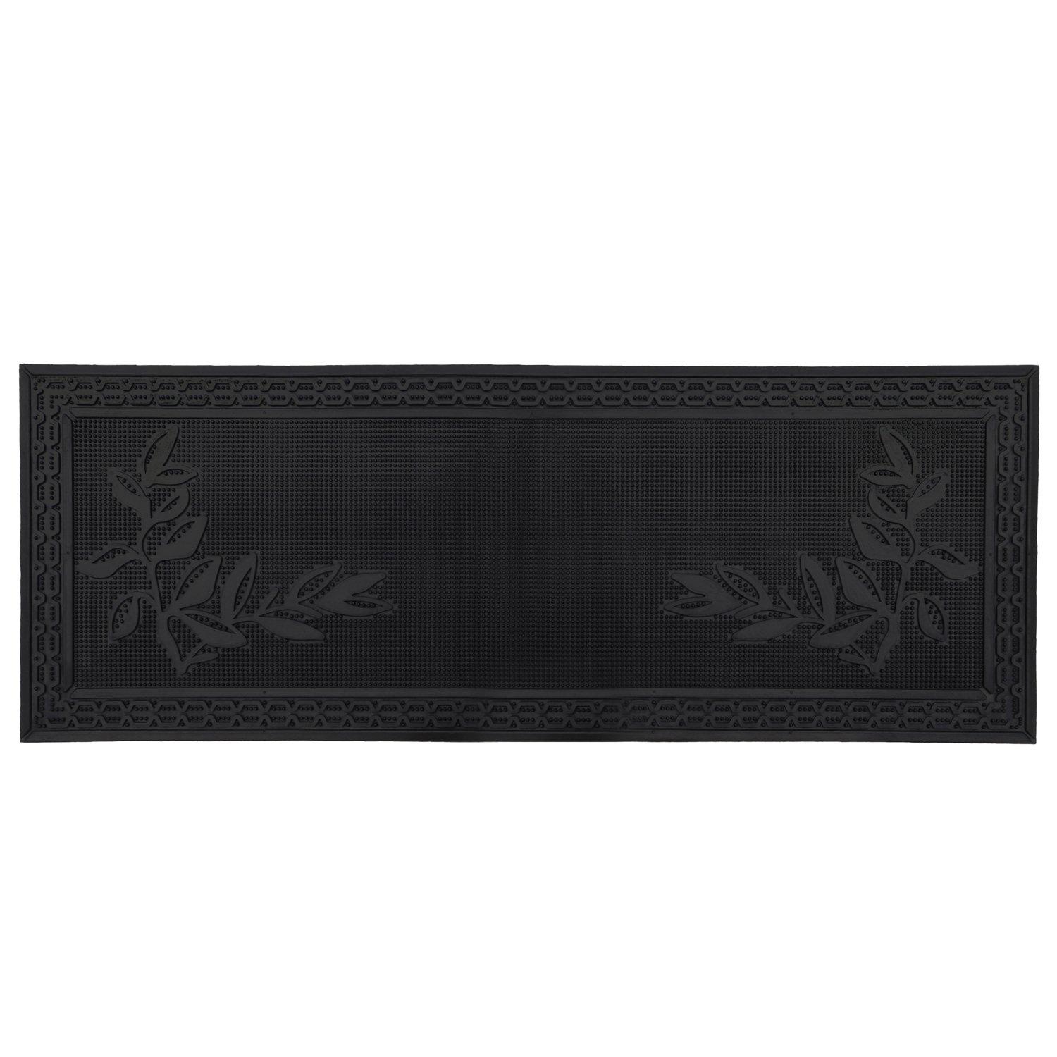 Flexible rubber studs that trap dirt and grit from shoes, while the raised surface gets into the grooves of the sole removing excess mud and dirt, leaving your home clean and tidy Eye-catching foliage design provides a pleasant greeting for your visitors, designed to complement any entrance or patio and framed with an attractive border for the perfect finishing touch The frame is finished with bevelled edges which help prevent tripping as the mat lays flat to the floor making it easy for wheels to glide over, its also designed to allow water to drain away easily Made from rubber, meaning the mat is long lasting and durable making it ideal for a busy home or office Easy to clean, simply shake or hose, practically maintenance free, its great quality and suitable for all weathers, all year round Suitable for outdoor use Size: 45x120cm approx.