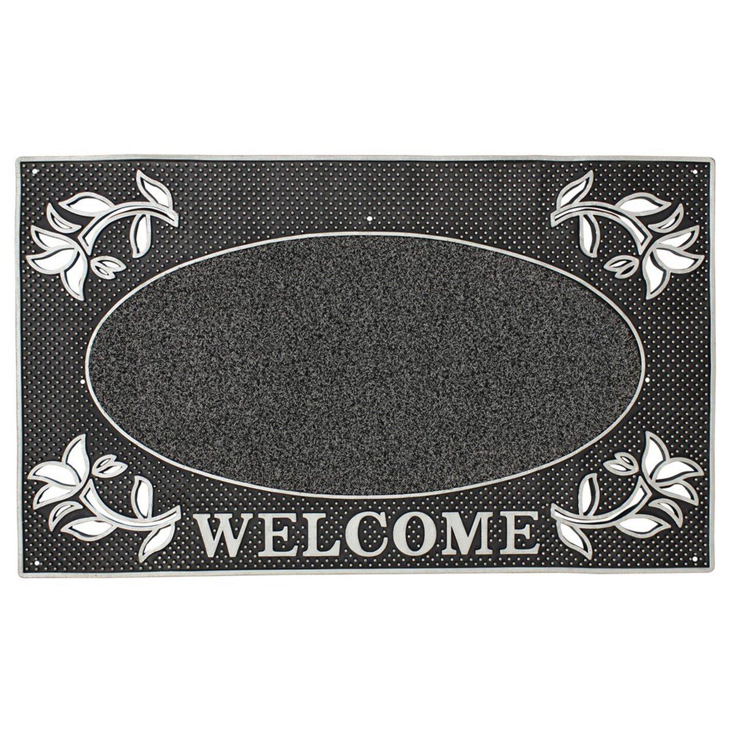 Flexible rubber studs that trap dirt and grit from shoes, while the Polypropylene surface gets into the grooves removing excess mud and dirt, leaving your home clean and tidy Eye-catching welcome design and metallic silver finish provides a pleasant greeting for your visitors and designed to complement any entrance Made from PVC and Polypropylene, meaning the mat is long lasting and durable, making it ideal for a busy home or office Easy to clean, simply shake or hose, practically maintenance free Great quality and suitable for all weathers, all year round Suitable for outdoor use Size: 45x75cm approx.