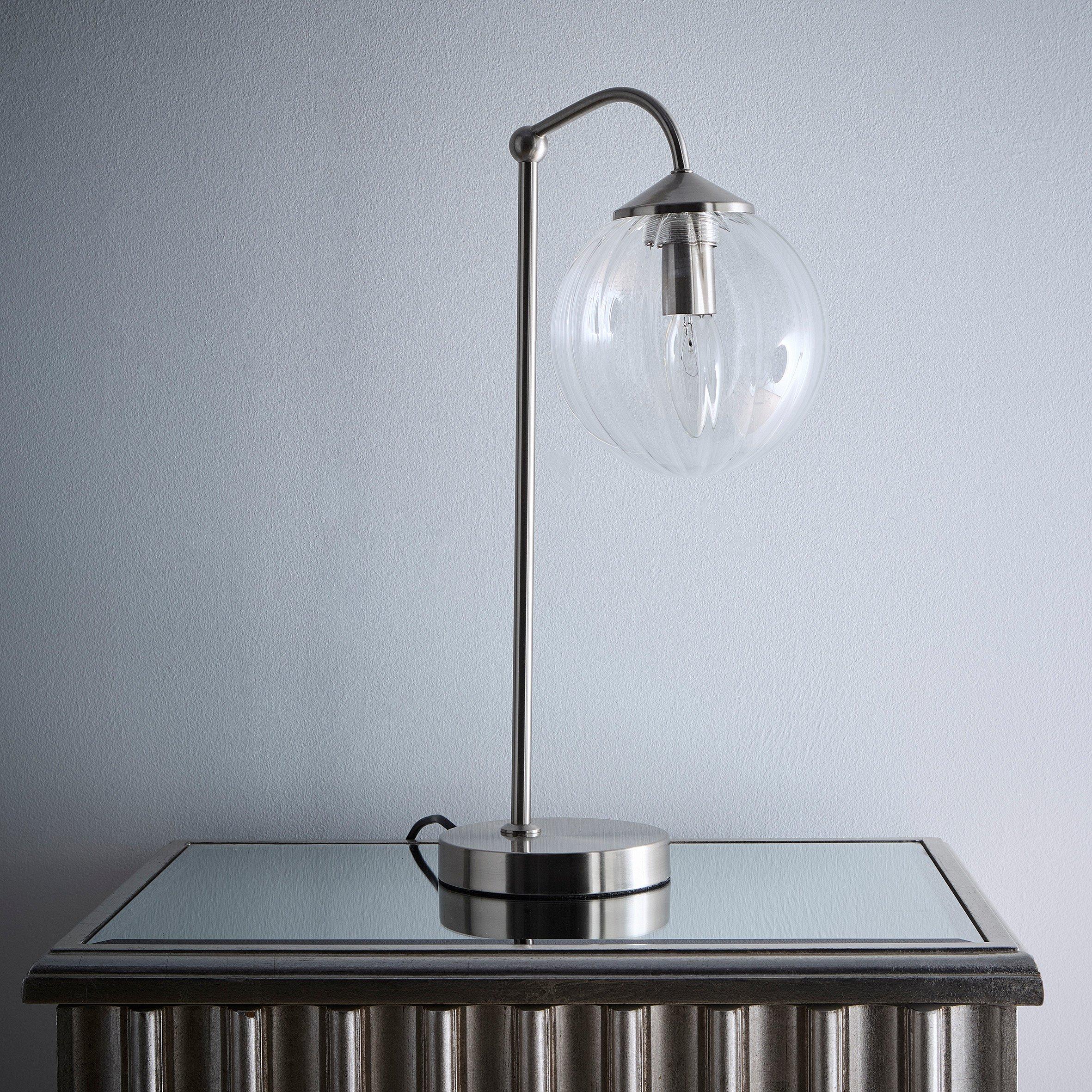 Stunning Satin Nickel Table Lamp Ribbed Clear Glass