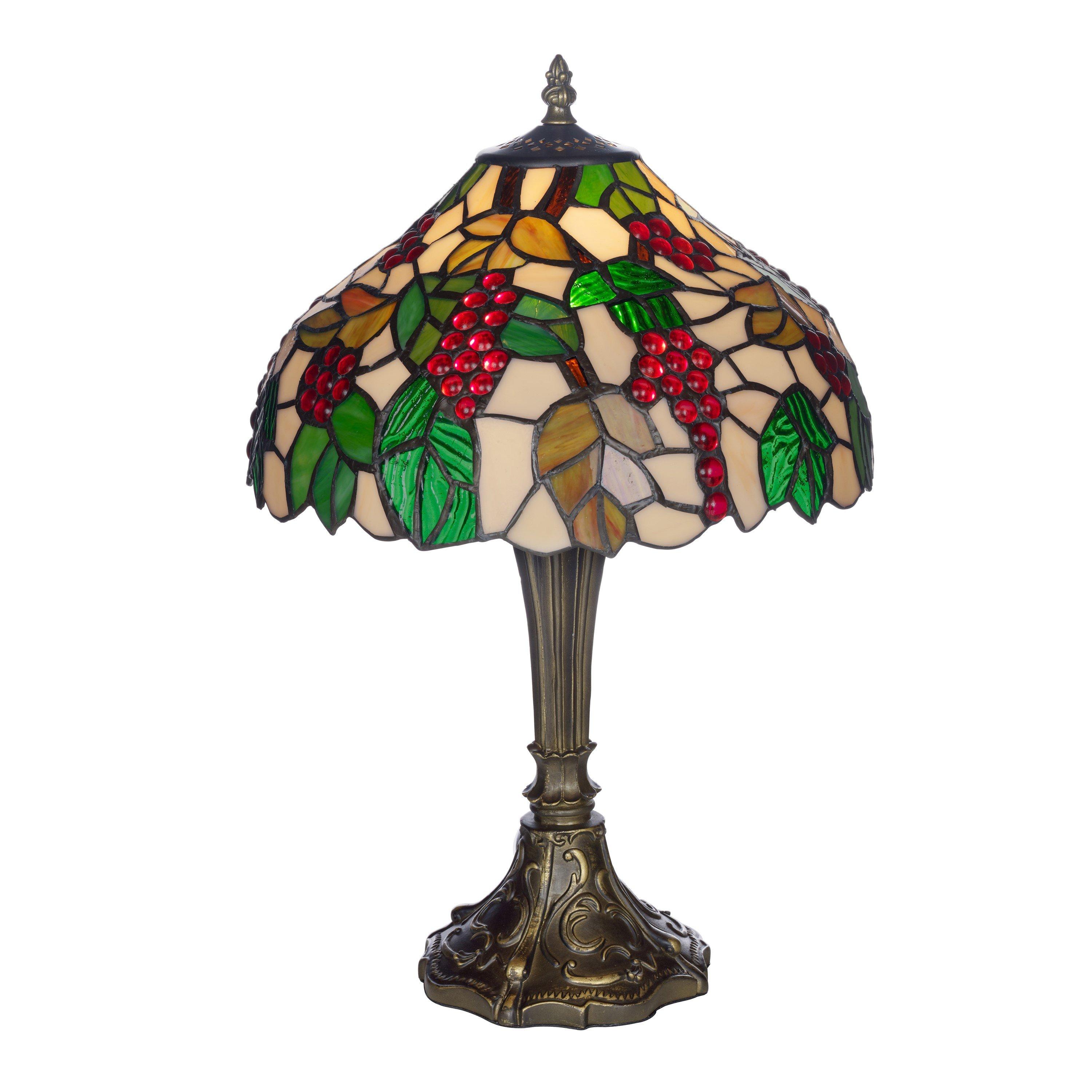 This traditional tiffany table lamp with antique brass stem and decorative leaf shade will complement most rooms around the home.