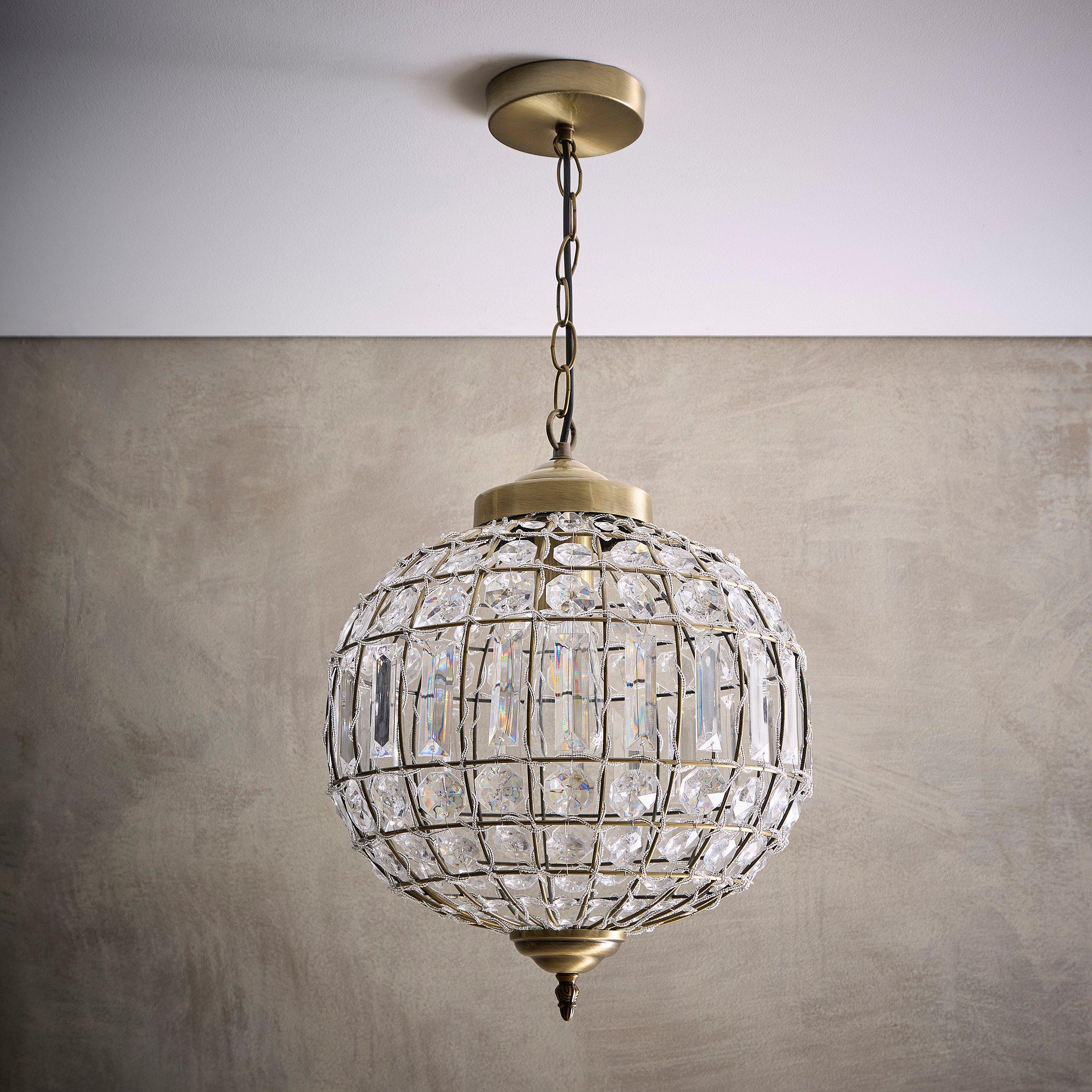 This stunning round ceiling chandelier composes of a crystal like acrylic structure in an antique brass finish. The Light would hang well in most home environments, including the kitchen, lounge, staircase or bedroom.