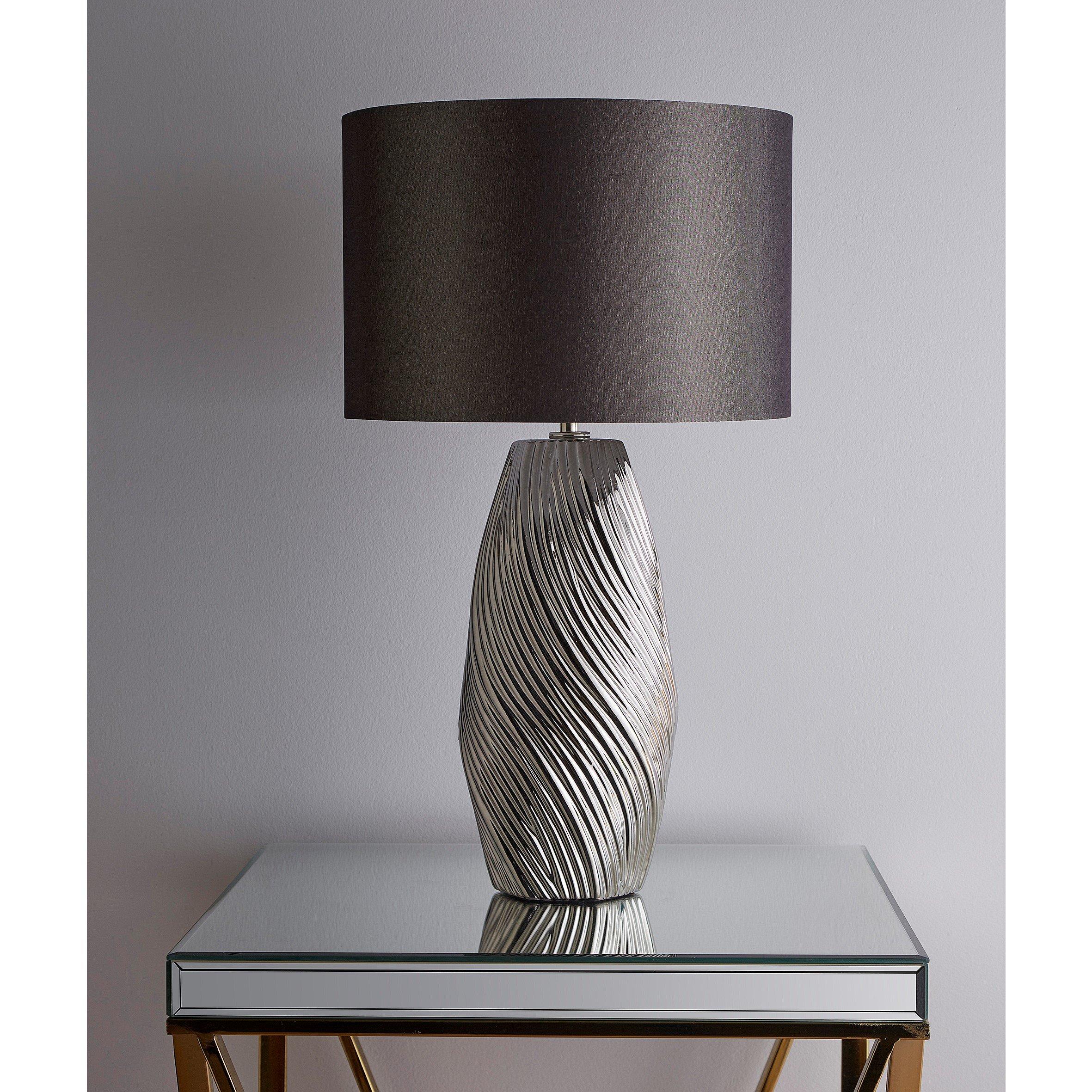 A Stunning Silver Ceramic Table lamp with a Grey Shade