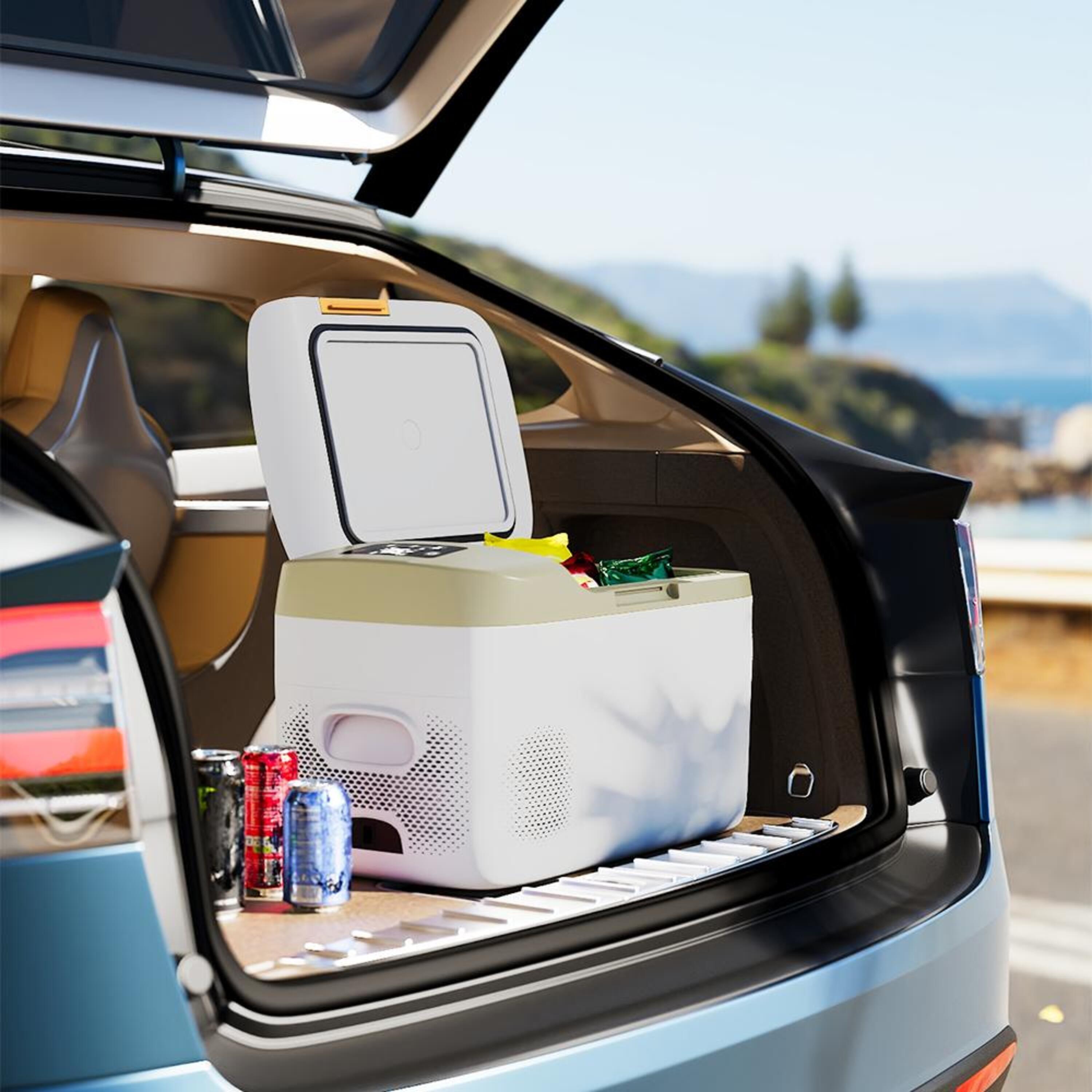 The weather is so hot, so bring a portable compressor refrigerator to always have cool drinks to quench your thirst. With a 23L capacity, it can accommodate enough drinks and snacks without taking up too much space in the car. It also provides two modes, fast cooling and energy-saving mode, so that your food will always stay fresh and not easy to spoil. With a digital display, you can easily adjust the temperature or lock it. With voltage protection, you can use it safely and enjoy a pleasant road trip.