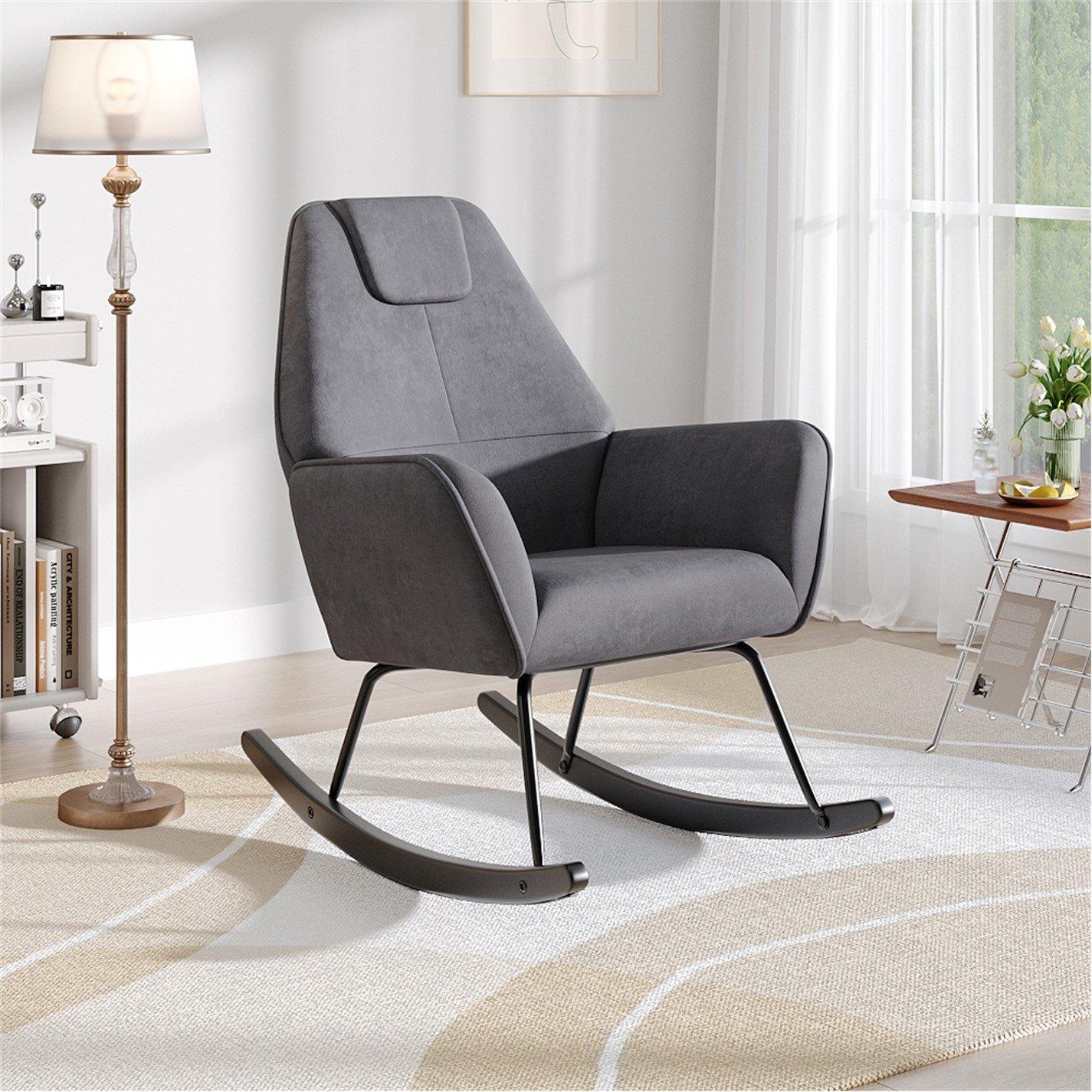 This rocking chair is an excellent addition to any living space. Its velvety upholstery and smooth rocking motion create the perfect spot for relaxing. With an ergonomic design, it cradles your body and offers outstanding lumbar support. The modern grey colour complements any nursery decor seamlessly.