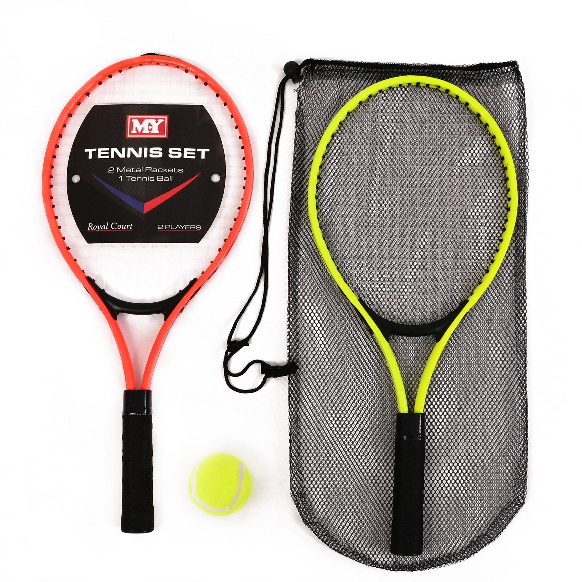 Give tennis a go! A British summer time essential, get into the Wimbledon spirit, perfect your tennis skills and practice your serves. This tennis set is ideal for beginners to give tennis a go - all you need is included in this 2 player set: 2 rackets, 1 mesh net carry bag, 1 tennis ball Suitable for ages 6+