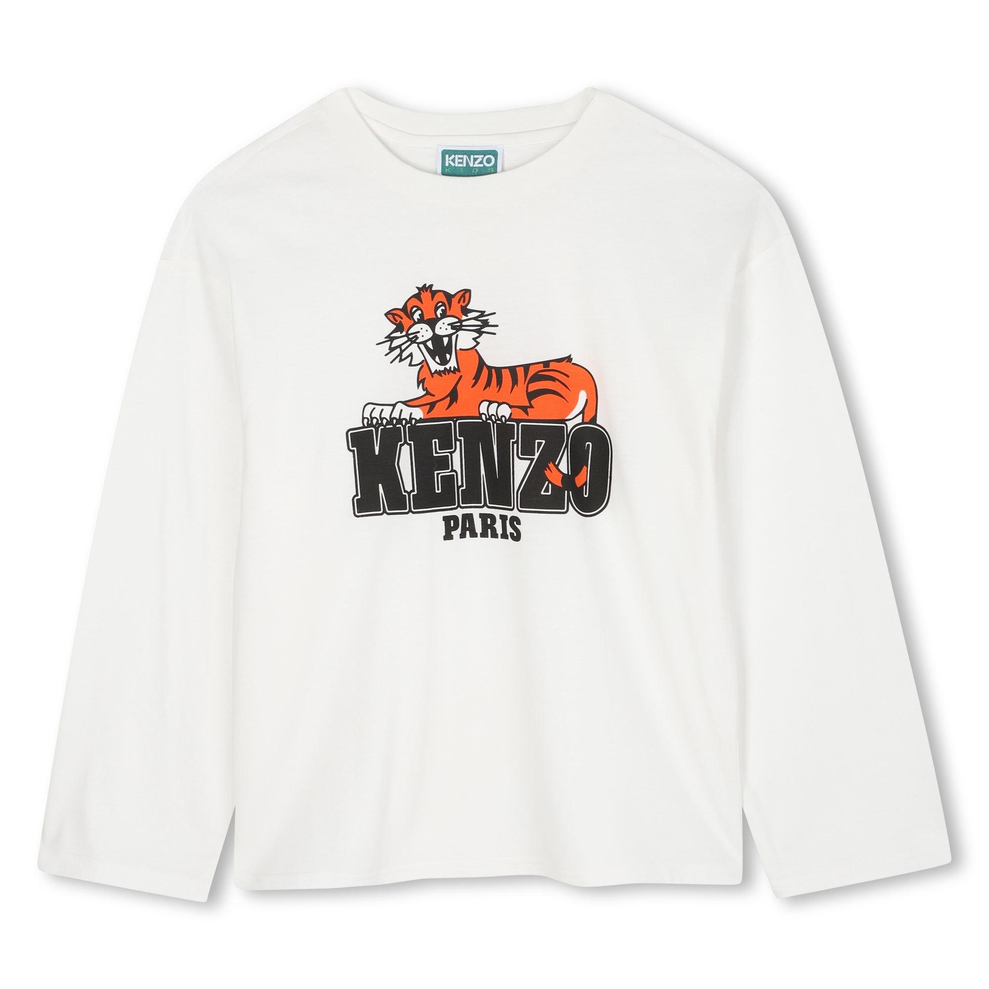 Kenzo's Tiger Long-Sleeve T-Shirt brings the brand's emblem to youth wardrobes with playful style. This casual fashion tee features bold graphic detailing and comfortable fabric, ideal for everyday adventures and standout looks for children.