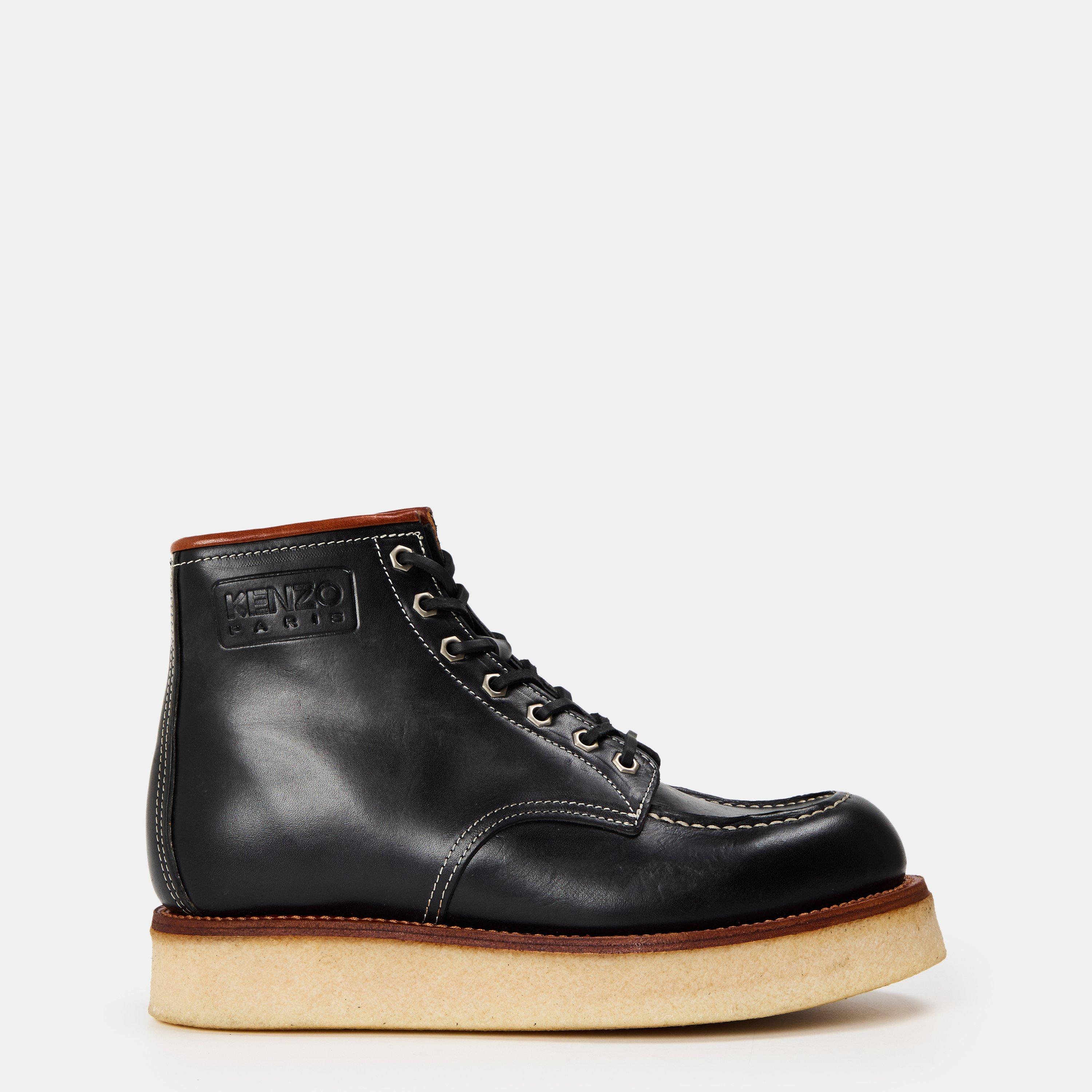 The Kenzo Zip and Lace-Up Plush Flat Ankle Boots are built for practical wear. The dual fastening system allows precise adjustment for secure, comfortable fit.