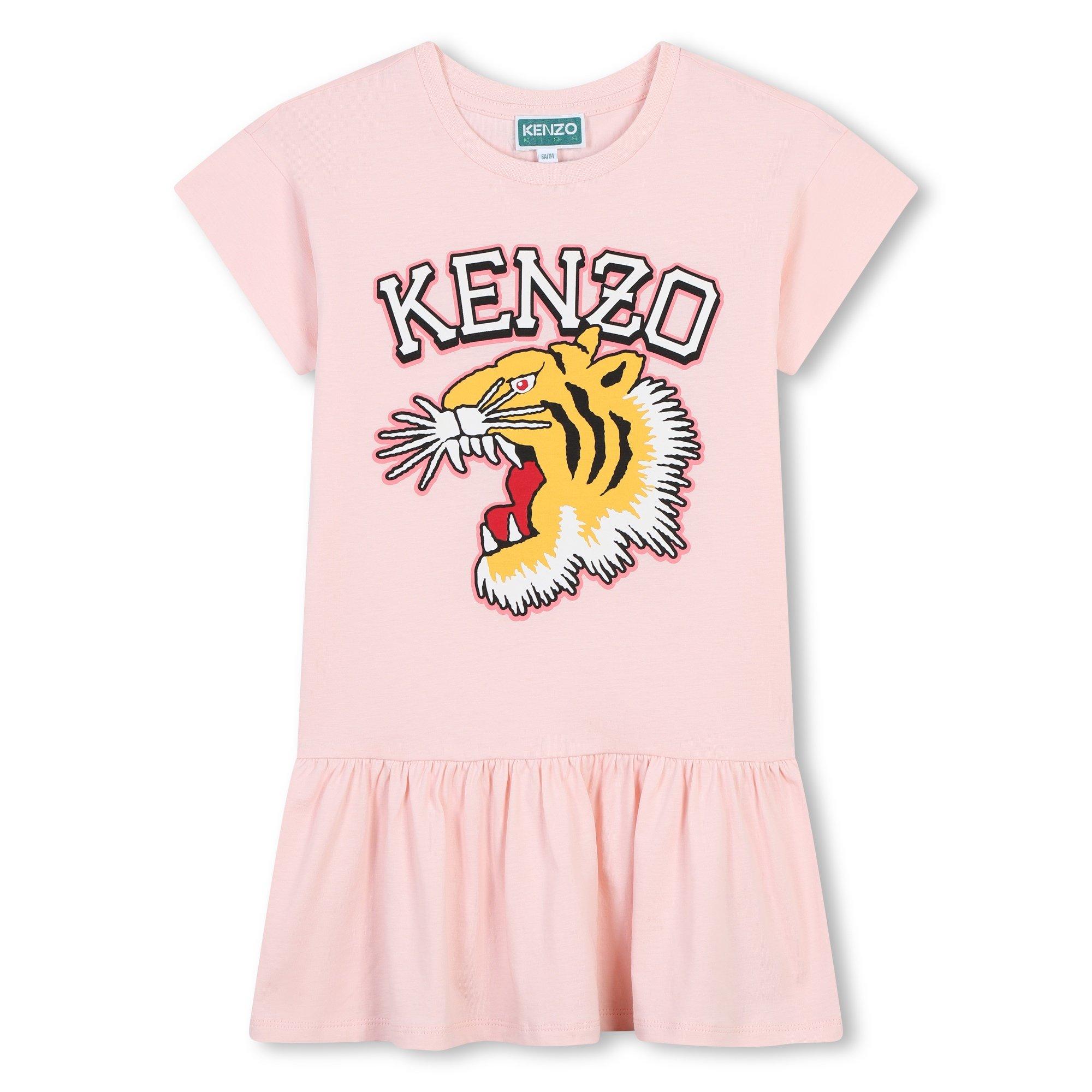Kenzo unveils the Printed Logo Dress Juniors, a fusion of youthful charm and refined elegance. Crafted from a soft cotton blend, this dress exudes luxury and comfort. Its regular fit with a dropped waist and ribbed crew neck with short sleeves embodies sophistication and timeless beauty. The gathered mini skirt adds a graceful movement, while the iconic Tiger print effortlessly commands attention, a proud symbol of the brand's spirit and style.