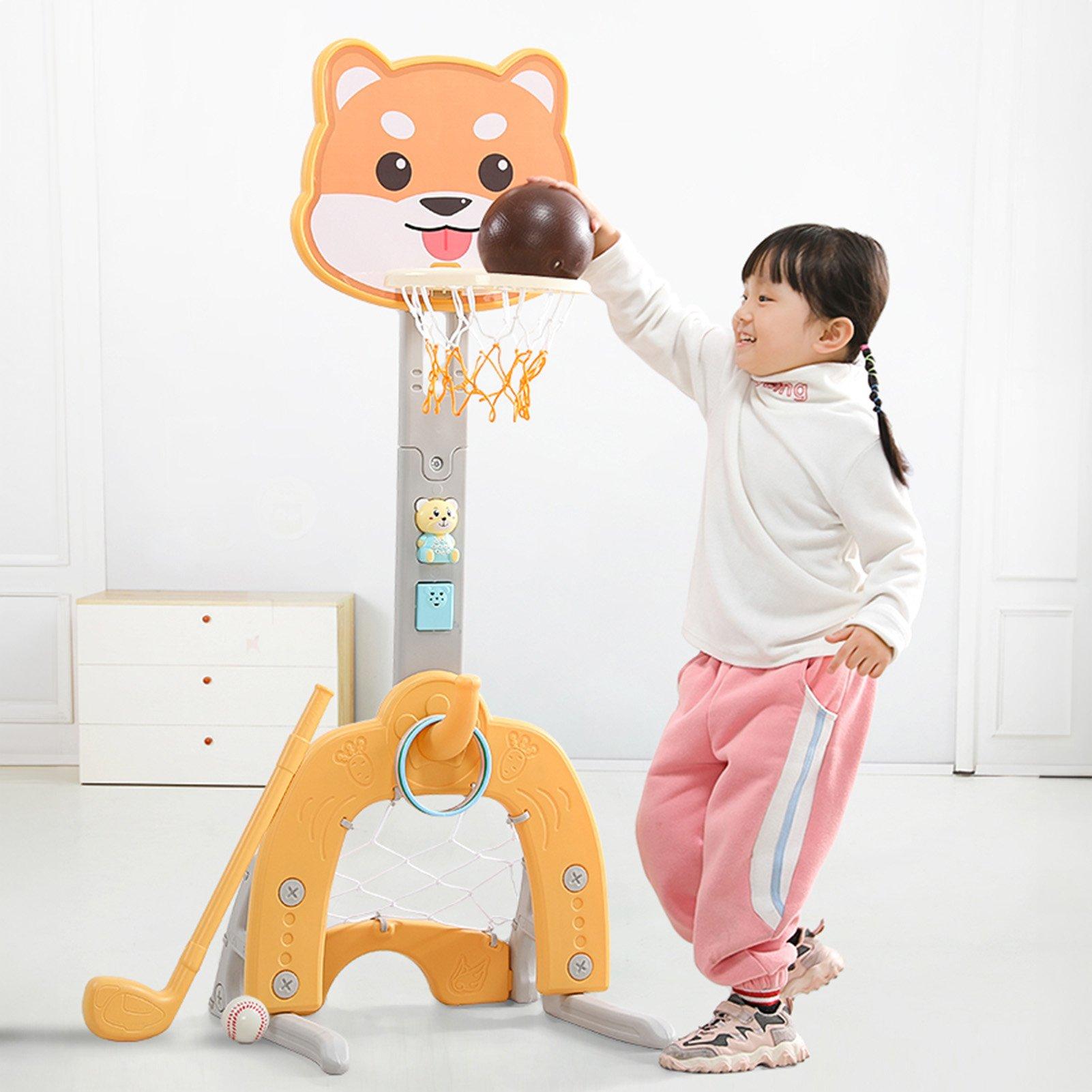 Elevate your child's playtime experience by seamlessly merging sports and enjoyment with this innovative 6-in-1 dog head basketball stand. This multifaceted play equipment is a treasure trove of entertainment, boasting a basketball hoop, a ring toss game, a music sensing function, a captivating story mode, and a golf putting feature. With such a diverse range of activities, it caters to various interests and keeps kids engaged for hours on end.