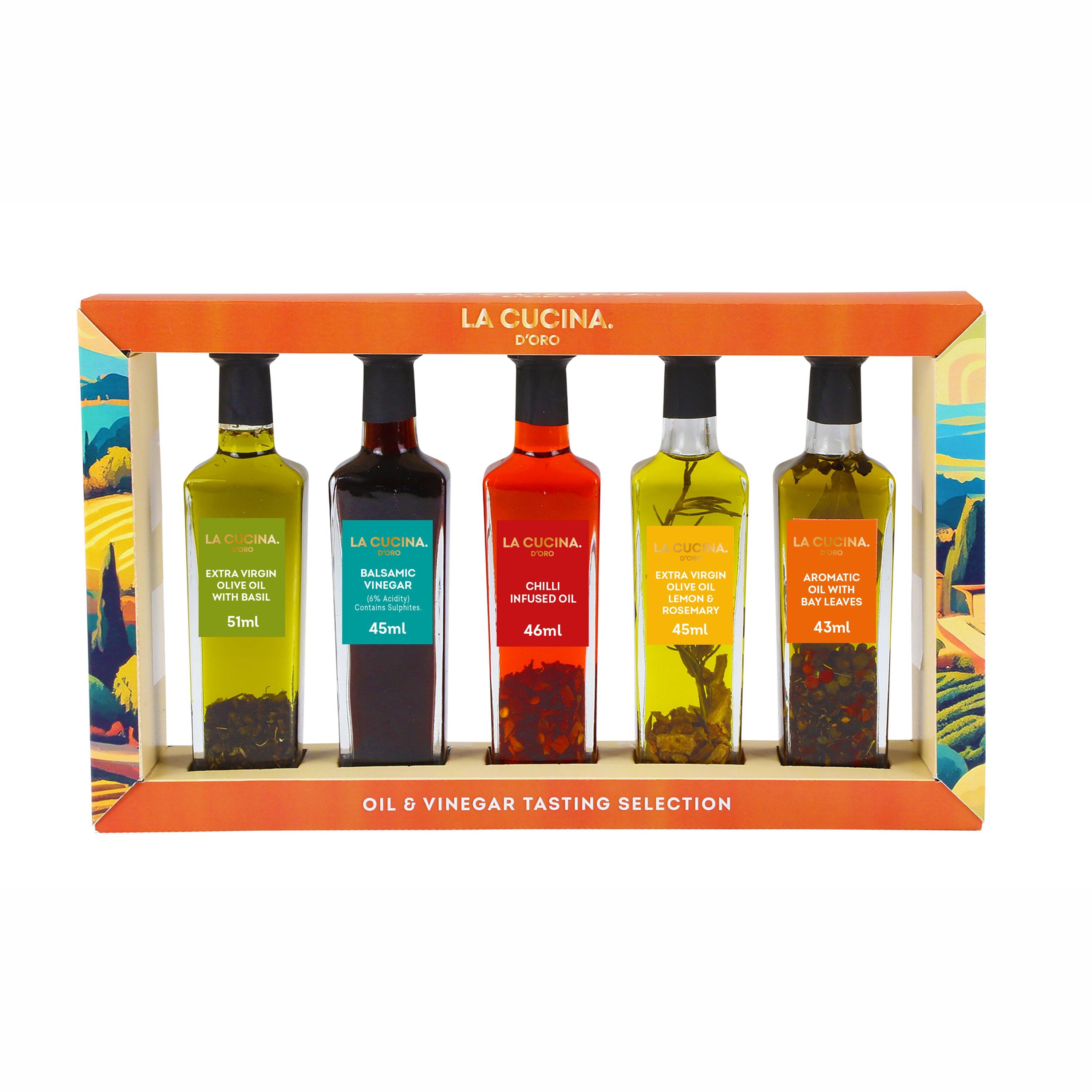 Bring bold Mediterranean flavour to Christmas with the La Cucina Tasting Selection. This beautifully presented oil and vinegar set includes a vibrant mix of infused oils and balsamic vinegar: from sunflower oil with peppercorns and chilli to olive oil with basil and rosemary, plus a classic Italian balsamic. A brilliant gift for those who love to cook or entertain, this flavoured oil selection makes a standout addition to any festive table. Perfect for stocking fillers or thoughtful gifts for foodies.
