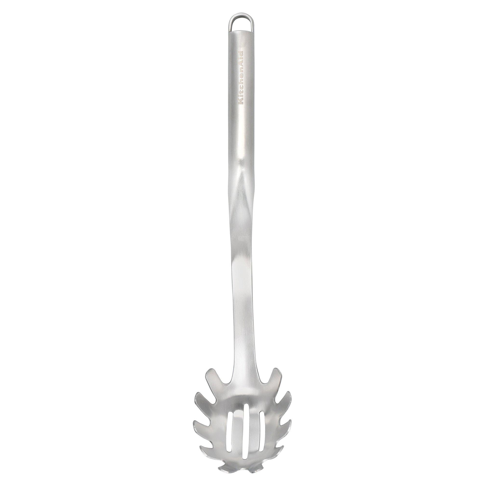 This KitchenAid Premium Pasta Fork is a kitchen essential, ideal for scooping and serving pasta. It features tines for grabbing spaghetti and has a hole to assist with draining liquids away. Durable for everyday use, this tool is made from stainless steel, which also gives it a sleek, modern look. And it's dishwasher-safe for easy cleanup.