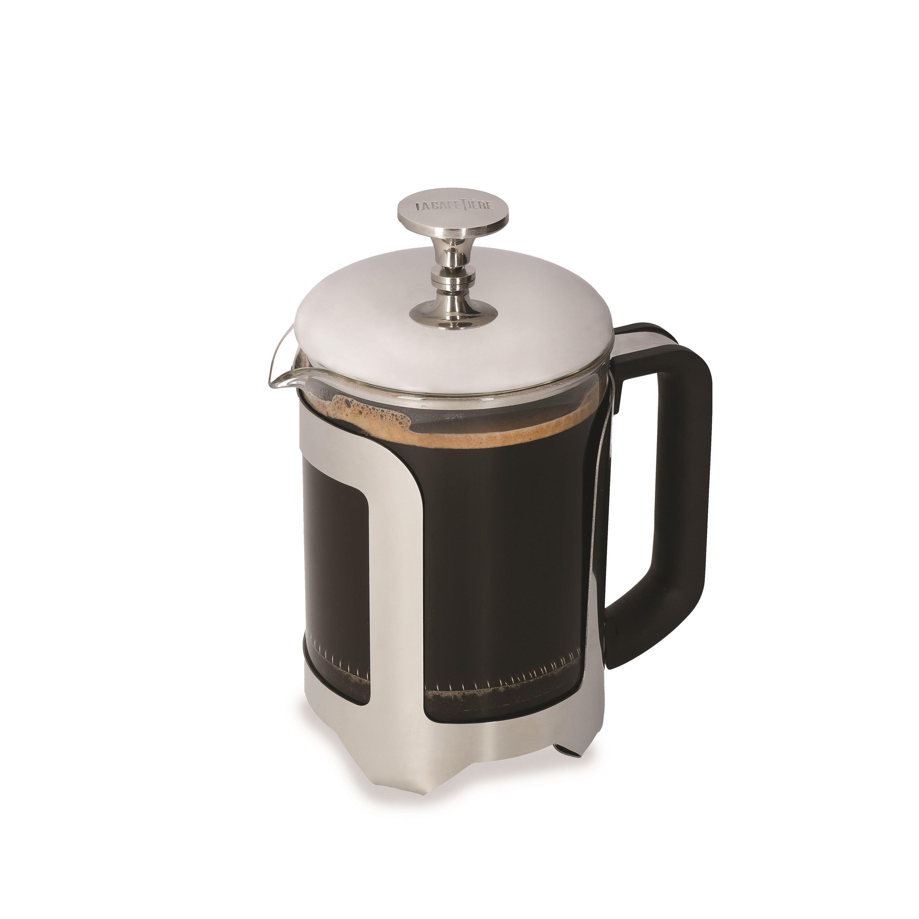 With its long and proud history, Rome is the city that started it all. The perfect name, then, for this traditional metal cafetiere. Like the city itself, the Roma coffee maker doesn't need fancy gimmicks to get attention. It keeps things simple, with classic curves and a reliable, low-maintenance design. Use it every day, and enjoy rich, aromatic coffee without hassle. It's fitted with a fine-mesh reusable stainless steel filter, which extracts those full, throaty flavours while keeping grounds firmly separated. This means every cup is as smooth and silky as the best cafe coffee. Fancy a quick brew? This small French press makes 650 ml (1.5 pint, 21 fl oz) of coffee, which equates to four cups. The beaker is made of thermal shock-resistant borosilicate glass and sits firmly in a robust, rust-resistant stainless steel frame. The frame incorporates a wide-set handle, too, which is coated in silicone for extra comfort and heat protection. The Roma stainless steel French Press comes securely packed in an attractive La Cafetiere gift box. It would make a thoughtful gift for anyone who loves simple, unfussy style and great coffee. The beaker is dishwasher safe, while the frame should be hand washed for best results. Replacement filter included. Covered by a 10-year guarantee.