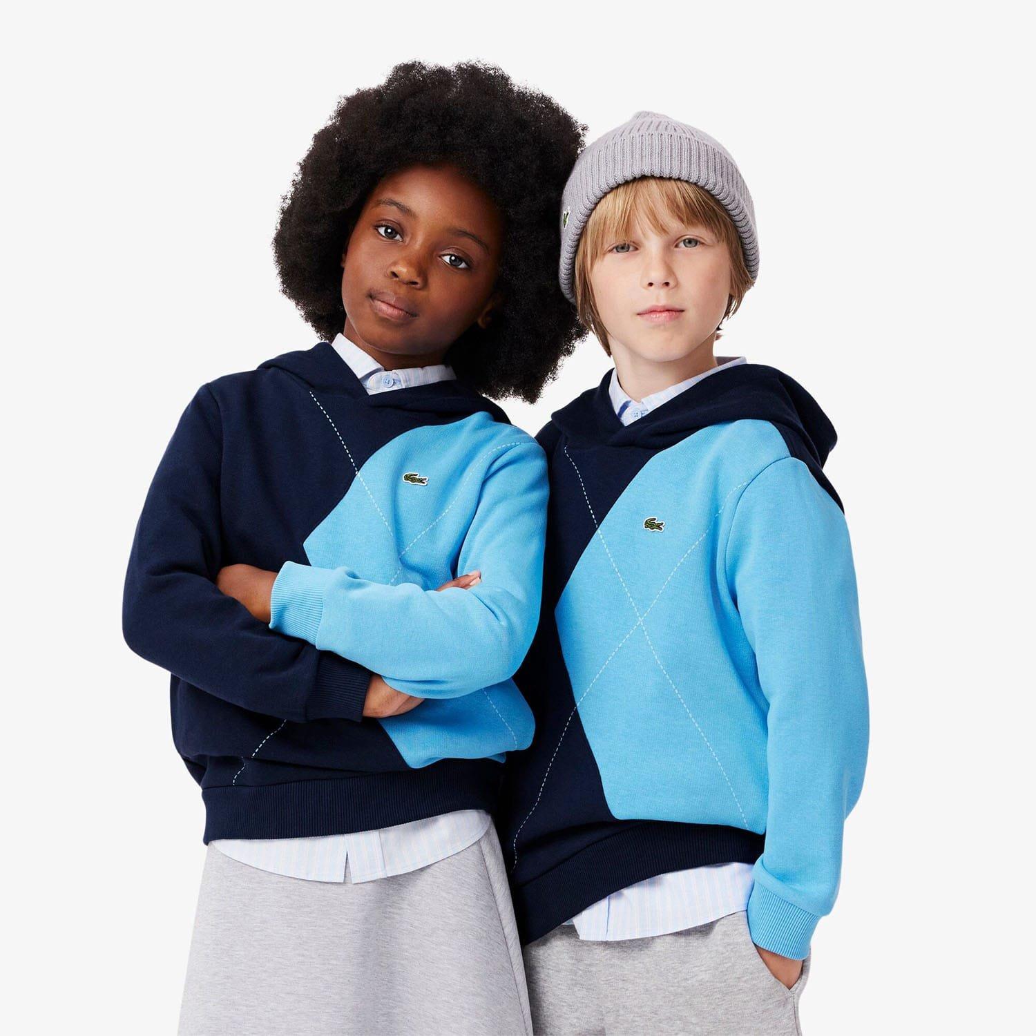 Argyle Motif Hoodie Organic cotton blend brushed fleece Crew neck with hood Cut-sewn argyle motif Embroidered crocodile on chest