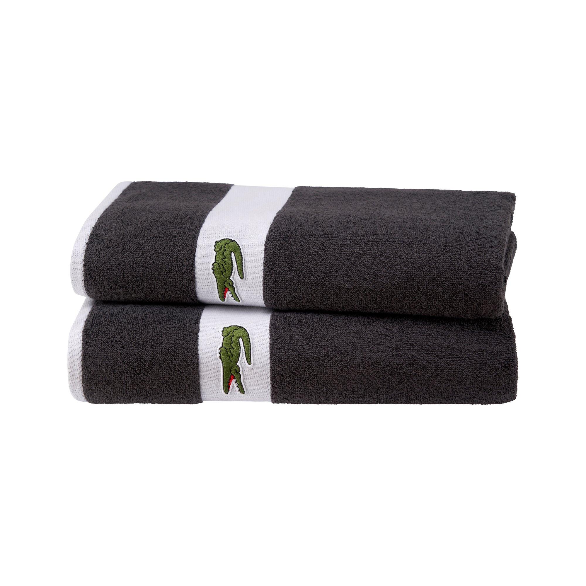Whether you want a stylish, sporty towel for the gym or to give your bathroom that elite feel, the Casual towelling range from Lacoste is always a winner. Inspired by the brand’s tennis background, this design features a white stripe bearing the iconic green crocodile motif in the centre and a loop in the French flag colours for convenient hanging. Crafted from 100% organic cotton, it’s soft and fast absorbing and comes in an array of chic colours.