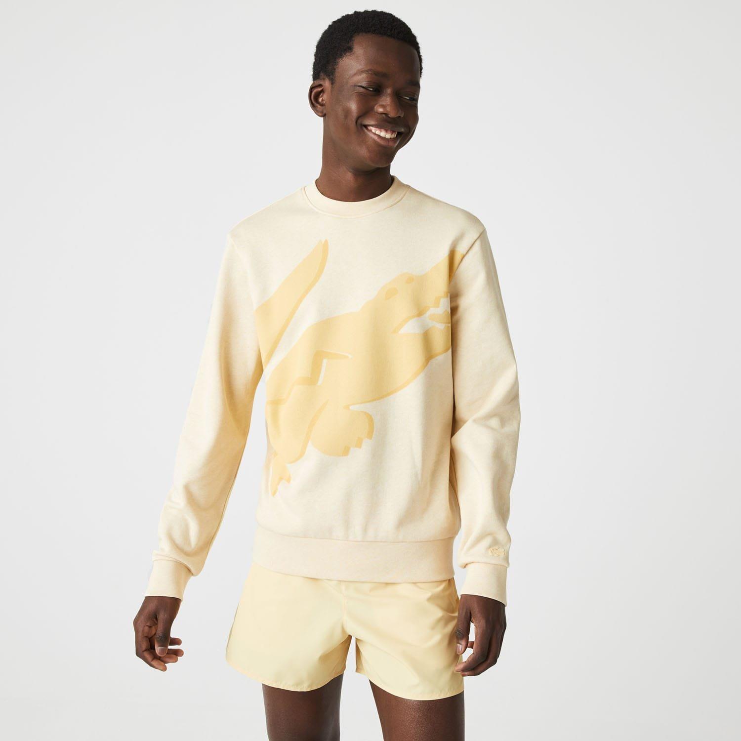 Men's Crew Neck Print Organic Cotton Fleece Sweatshirt Organic cotton fleece Ribbed crew neck Classic fit Ribbed finishes Green crocodile at sleeve end