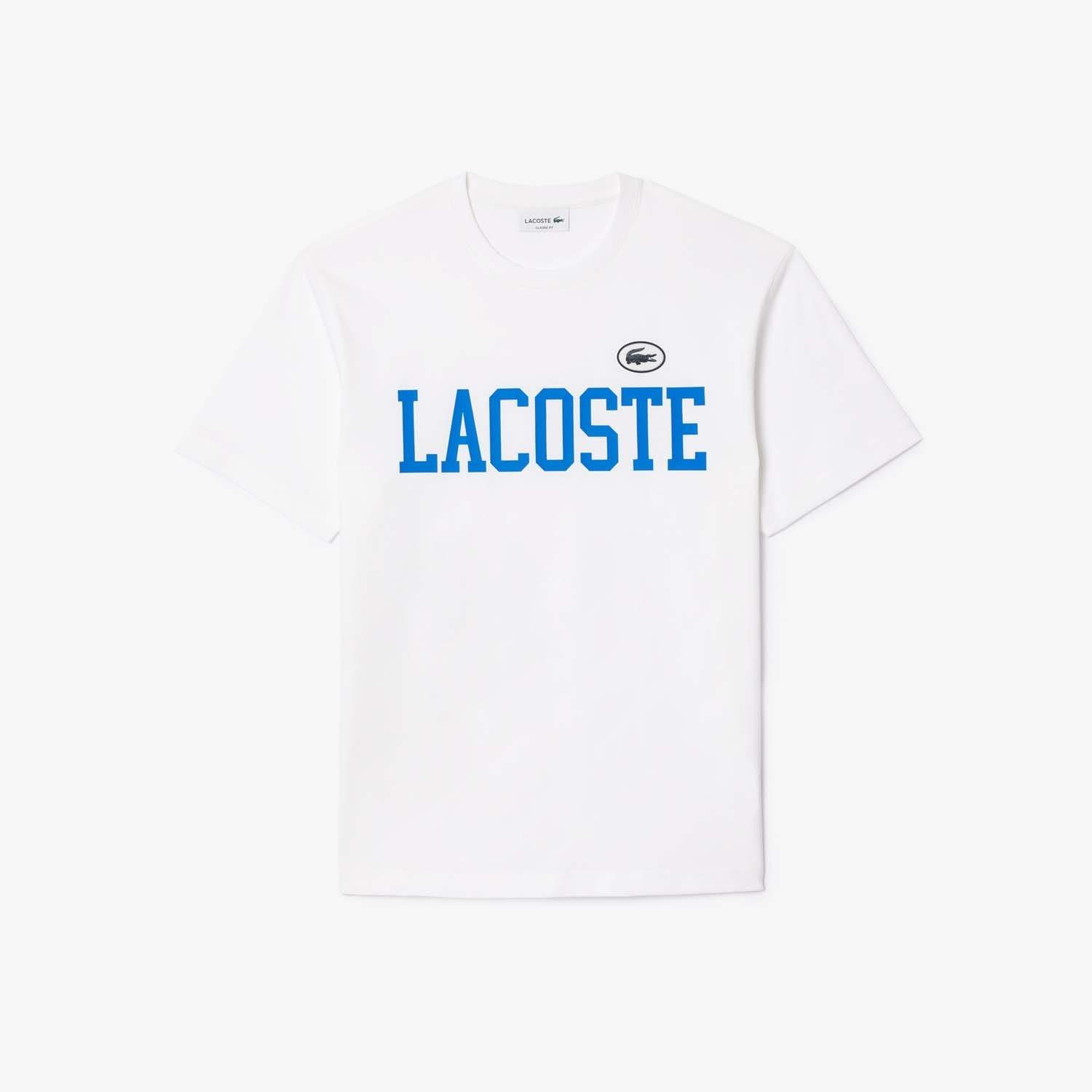 Mens Lacoste Cotton Contrast Print and Badge T-shirt Organic cotton Classic comfortable fit dropped shoulders Crew neck Badge with crocodile on chest